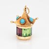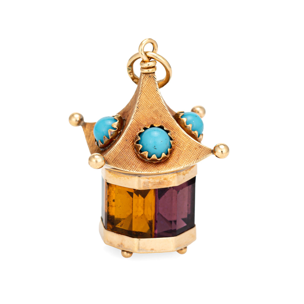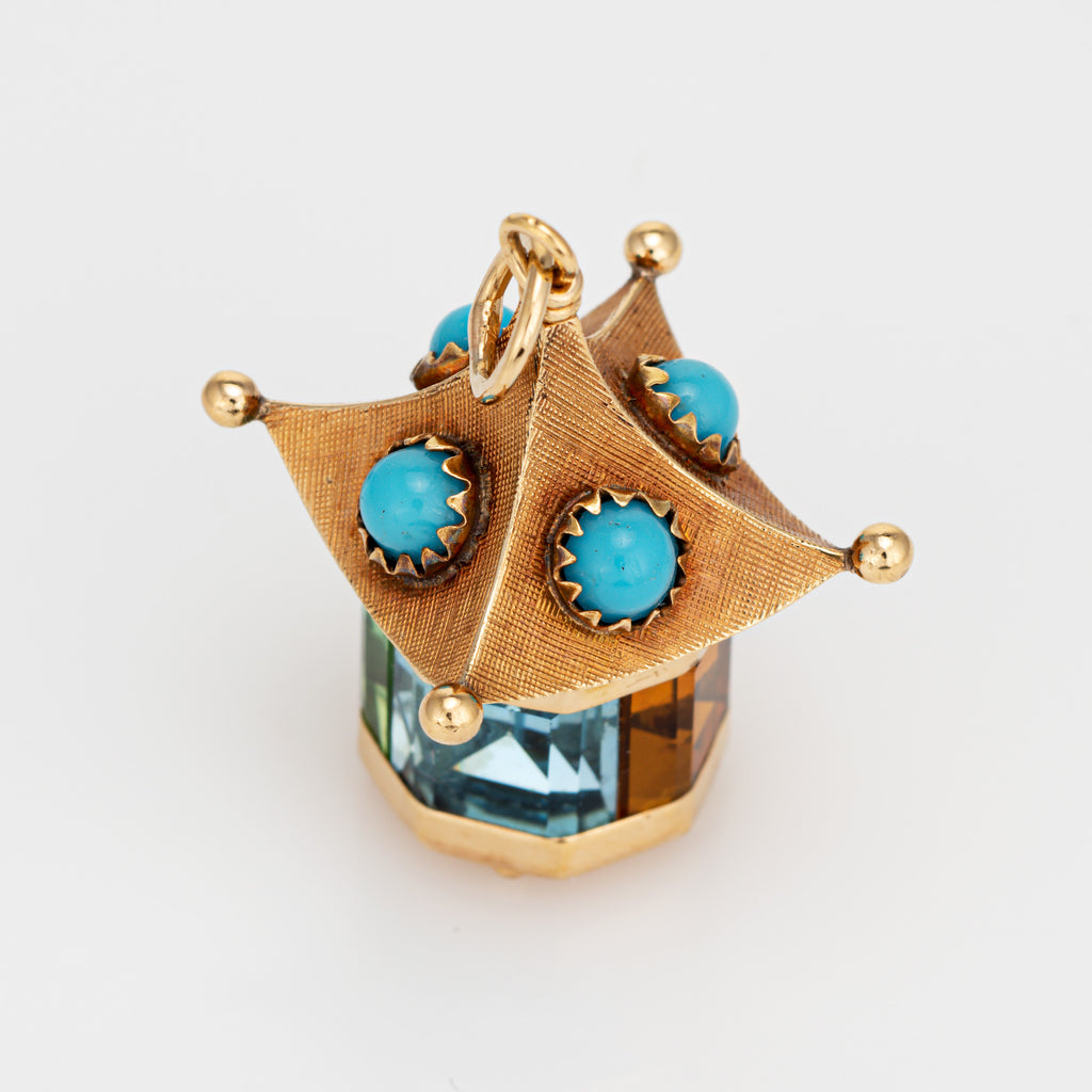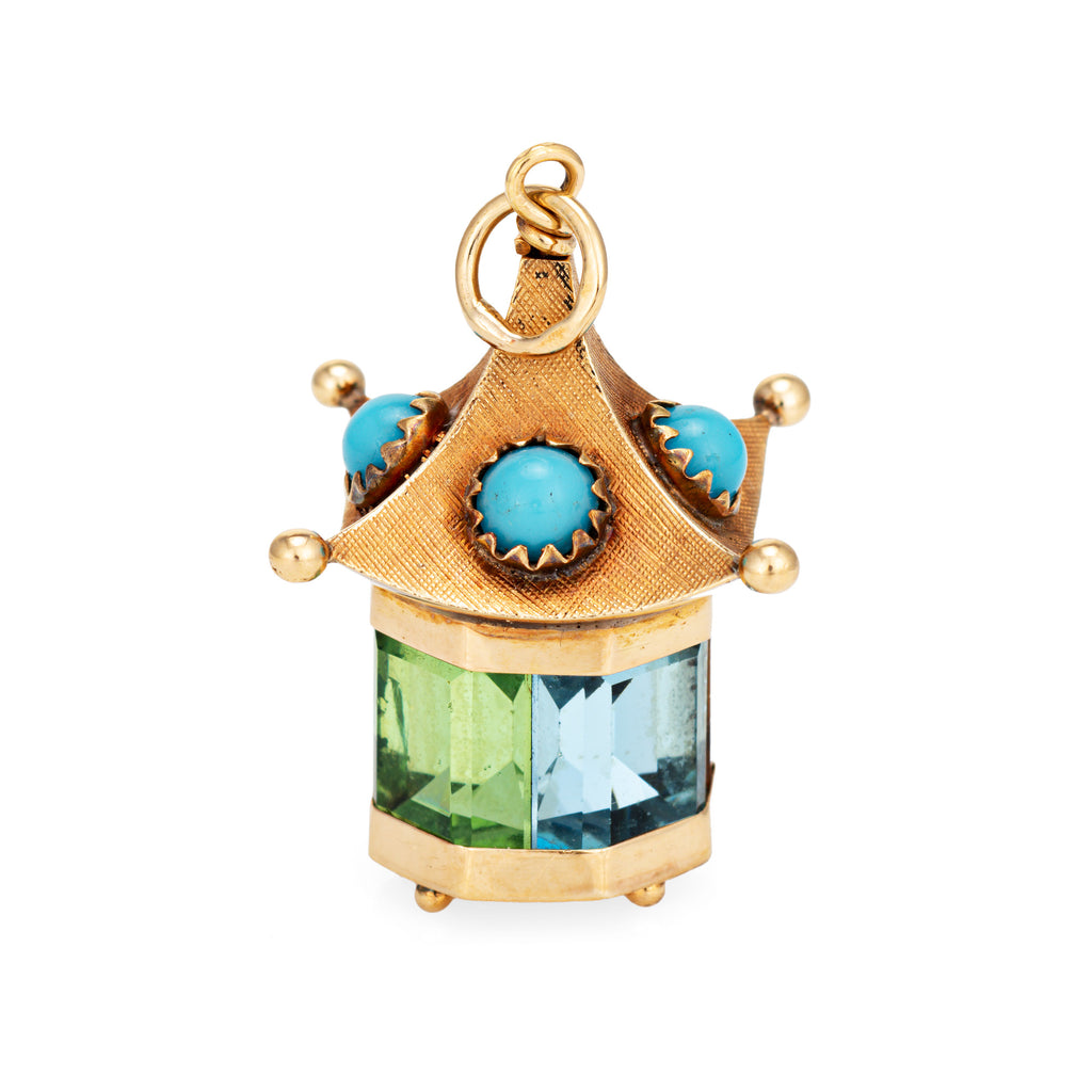 Asian Temple Charm Vintage 14k Yellow Gold Multi Gemstone Pendant Fine Jewelry