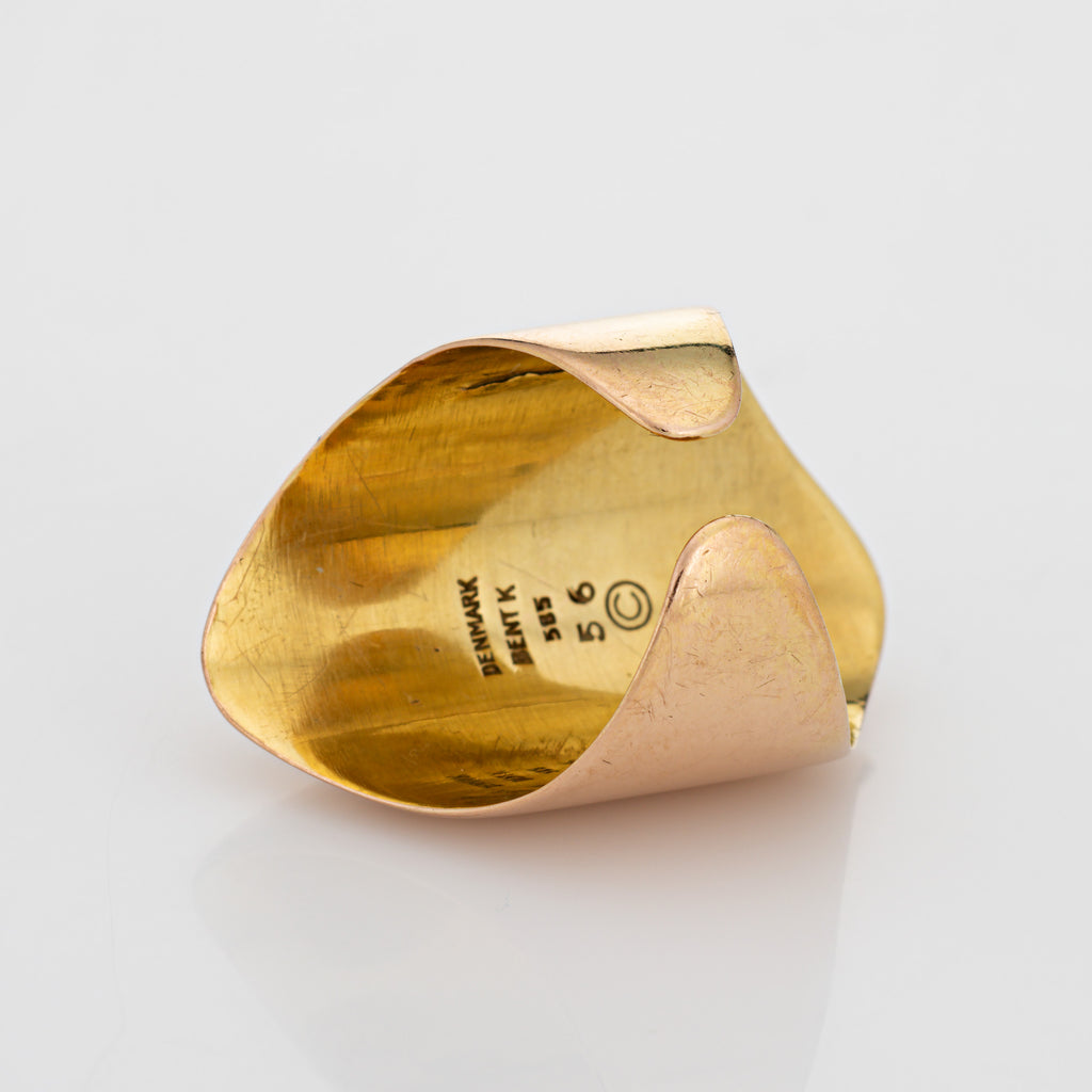 Metal & Hallmark: 14 karat yellow gold. The ring is hallmarked "14k" along with "Bent K", "Denmark" and "56"