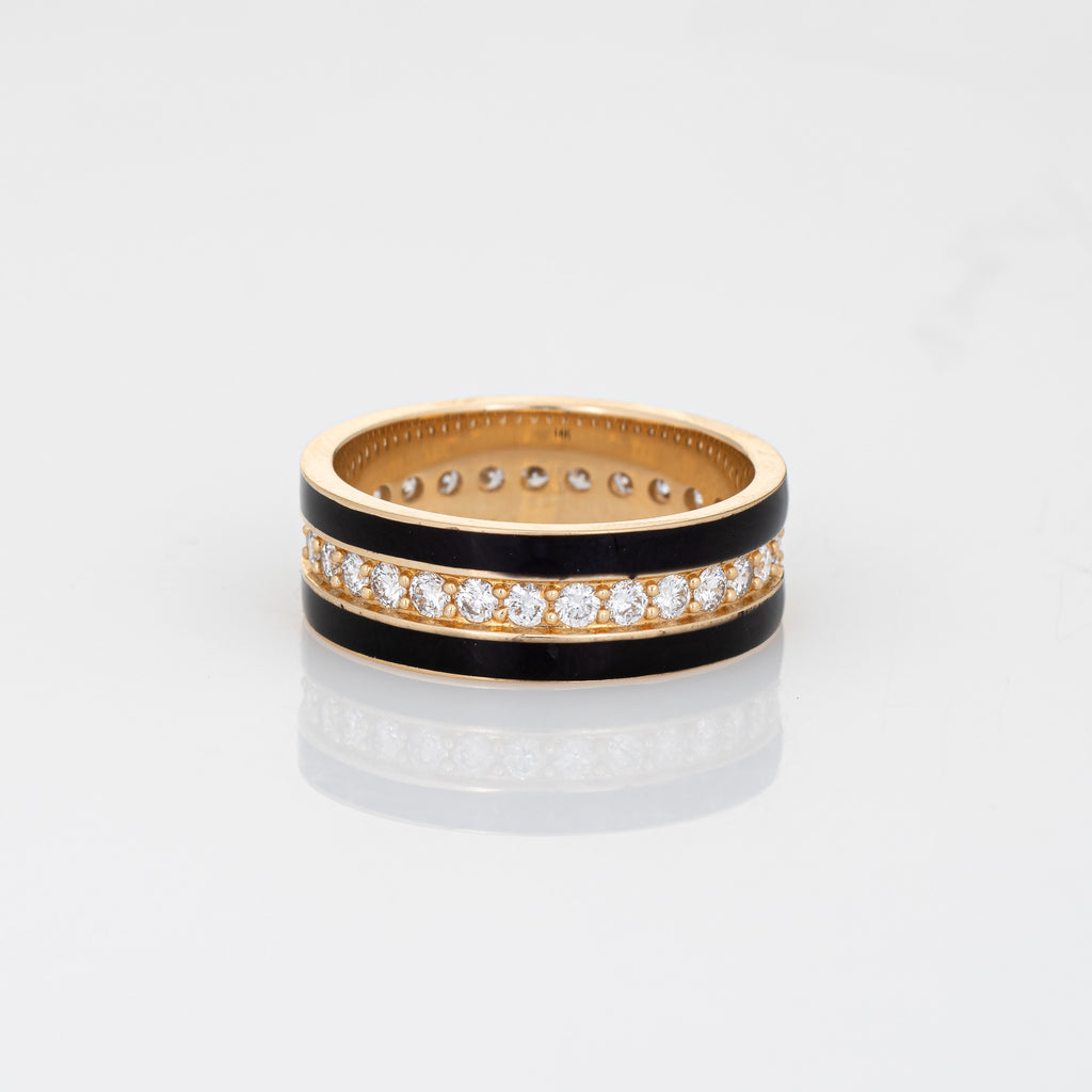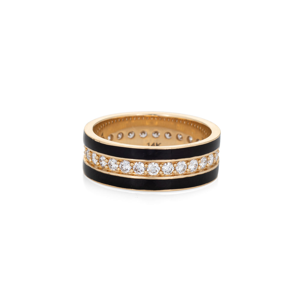 Stylish black enamel diamond eternity ring crafted in 14 karat yellow gold.