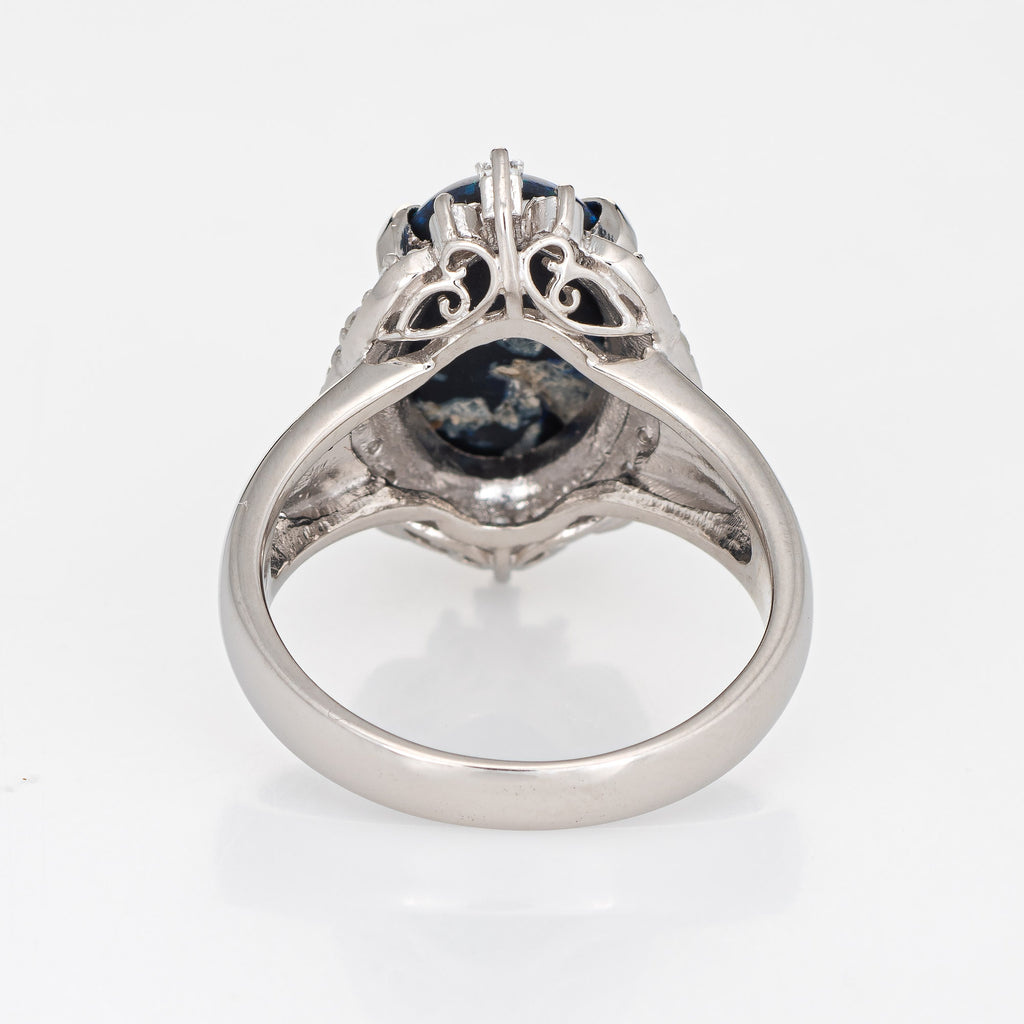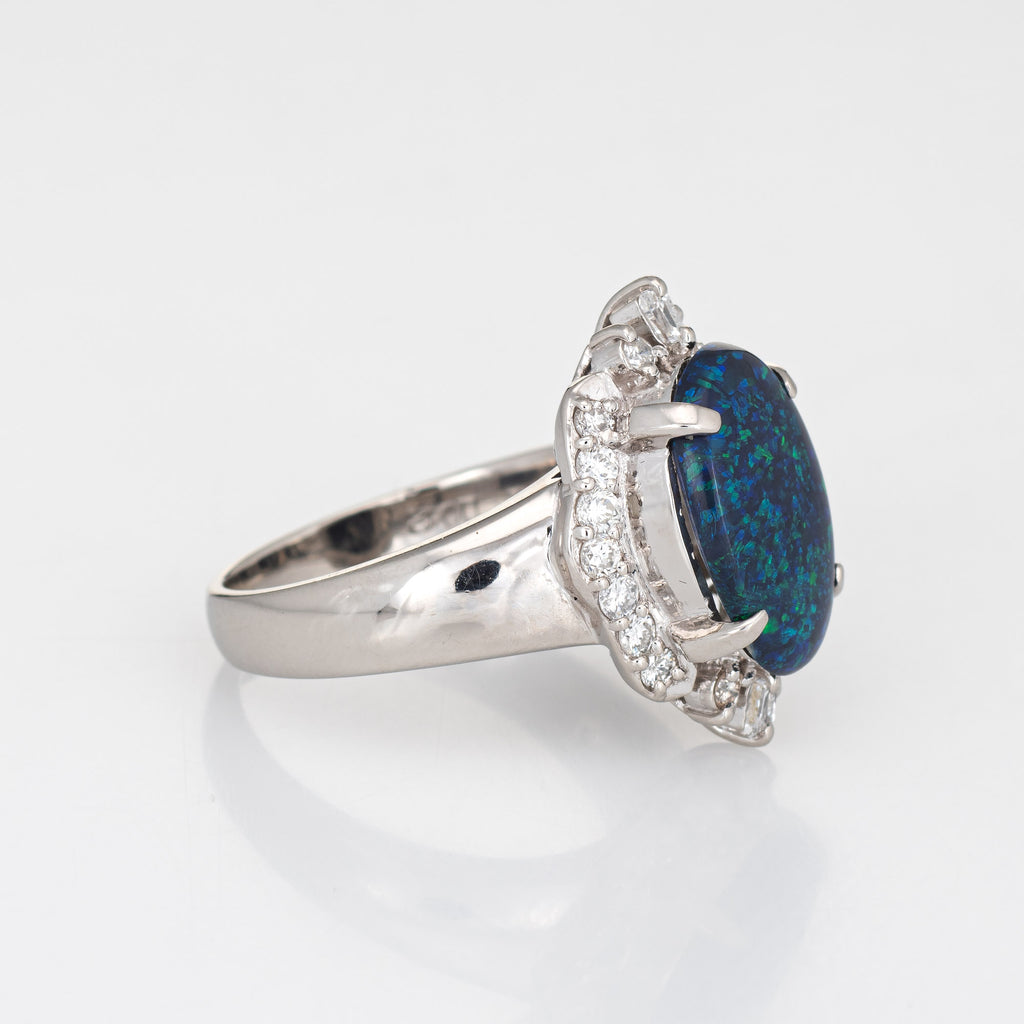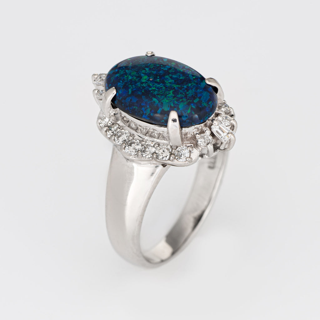 Stylish black opal & diamond cocktail ring crafted in 900 platinum.