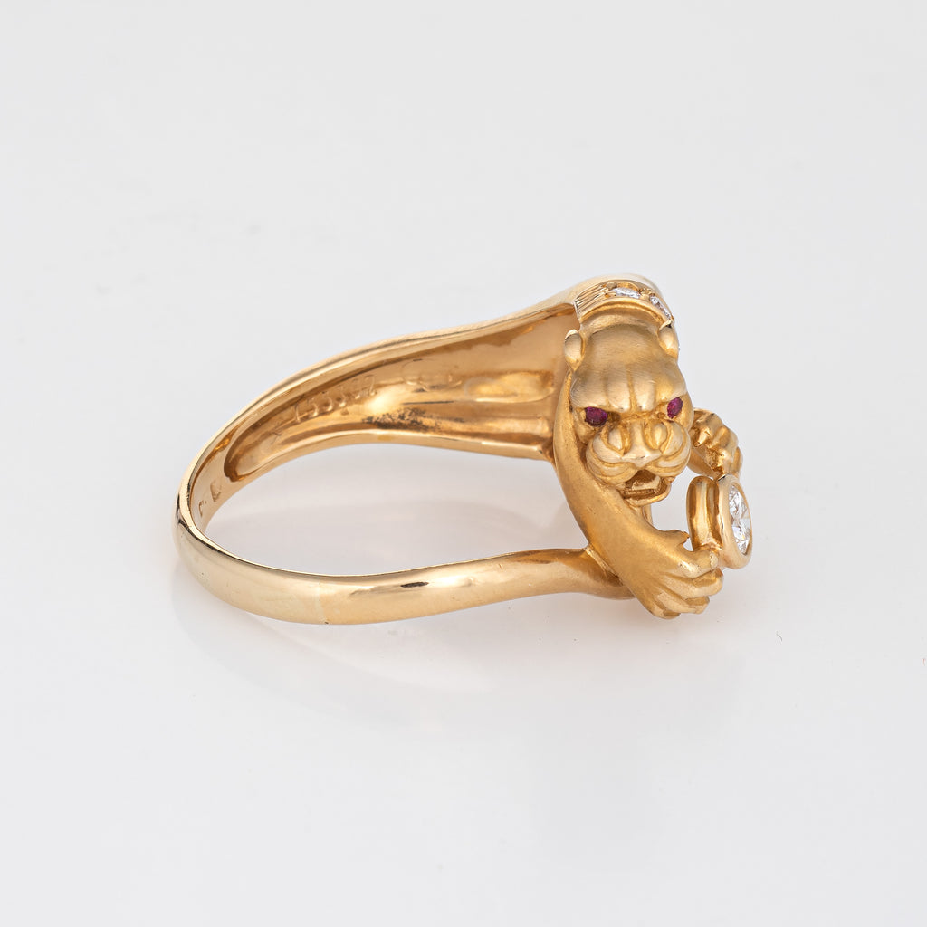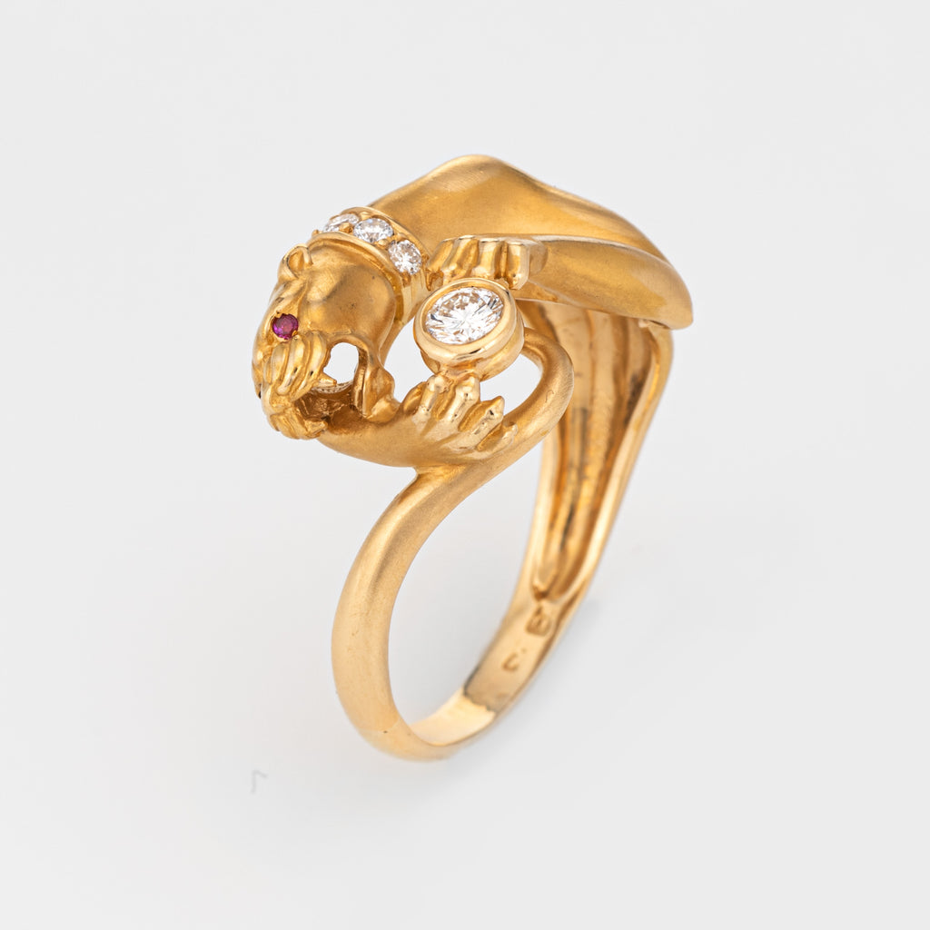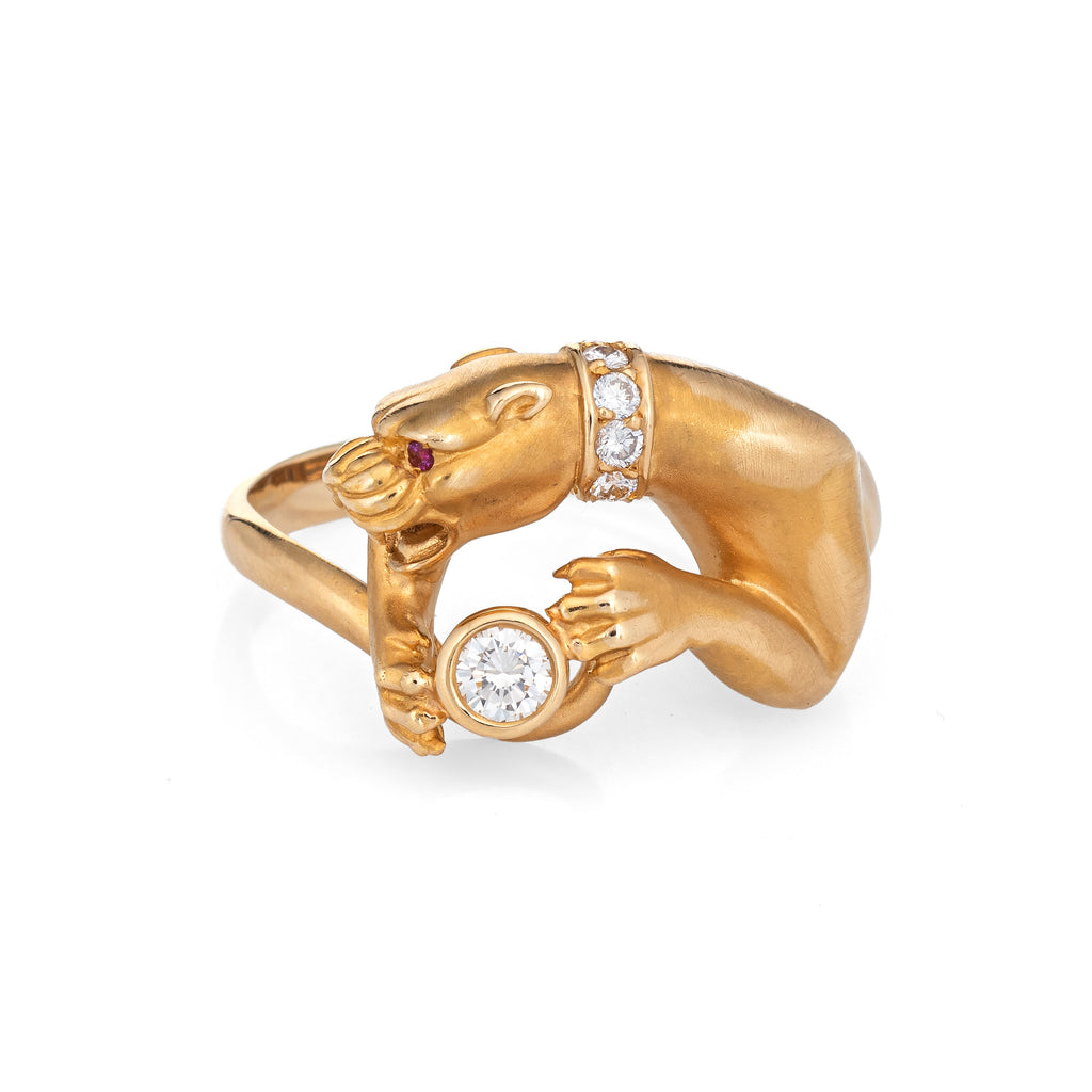 Stylish estate Carrera y Carrera diamond panther ring crafted in 18k yellow gold.