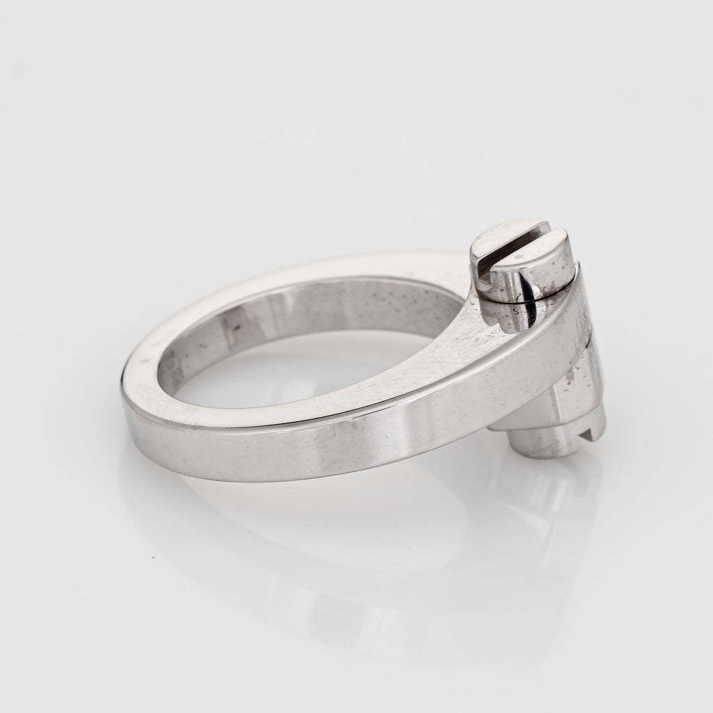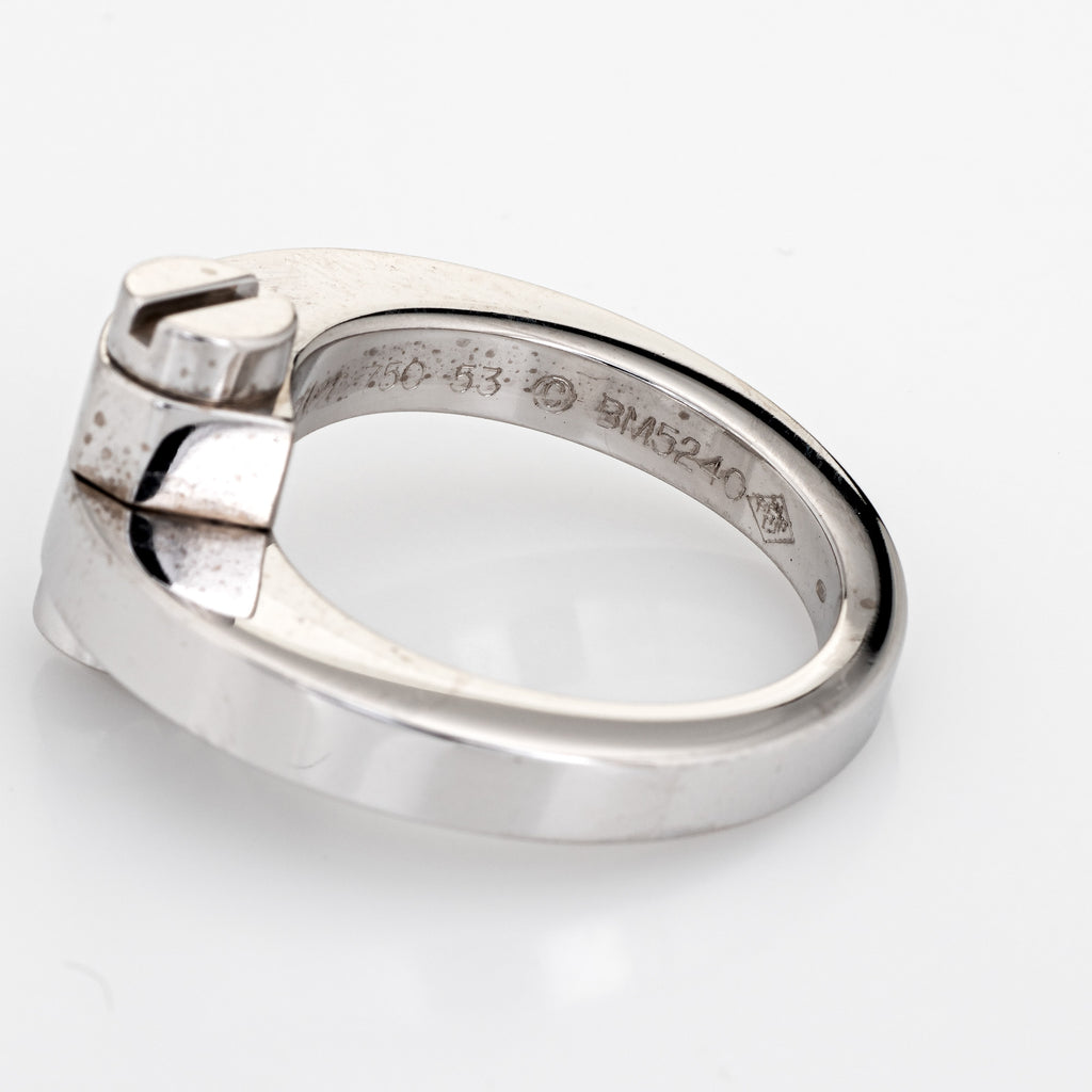 Cartier Menotte Ring 18k White Gold Band Sz 53 US 6 1/4 Screw Motif Bypass