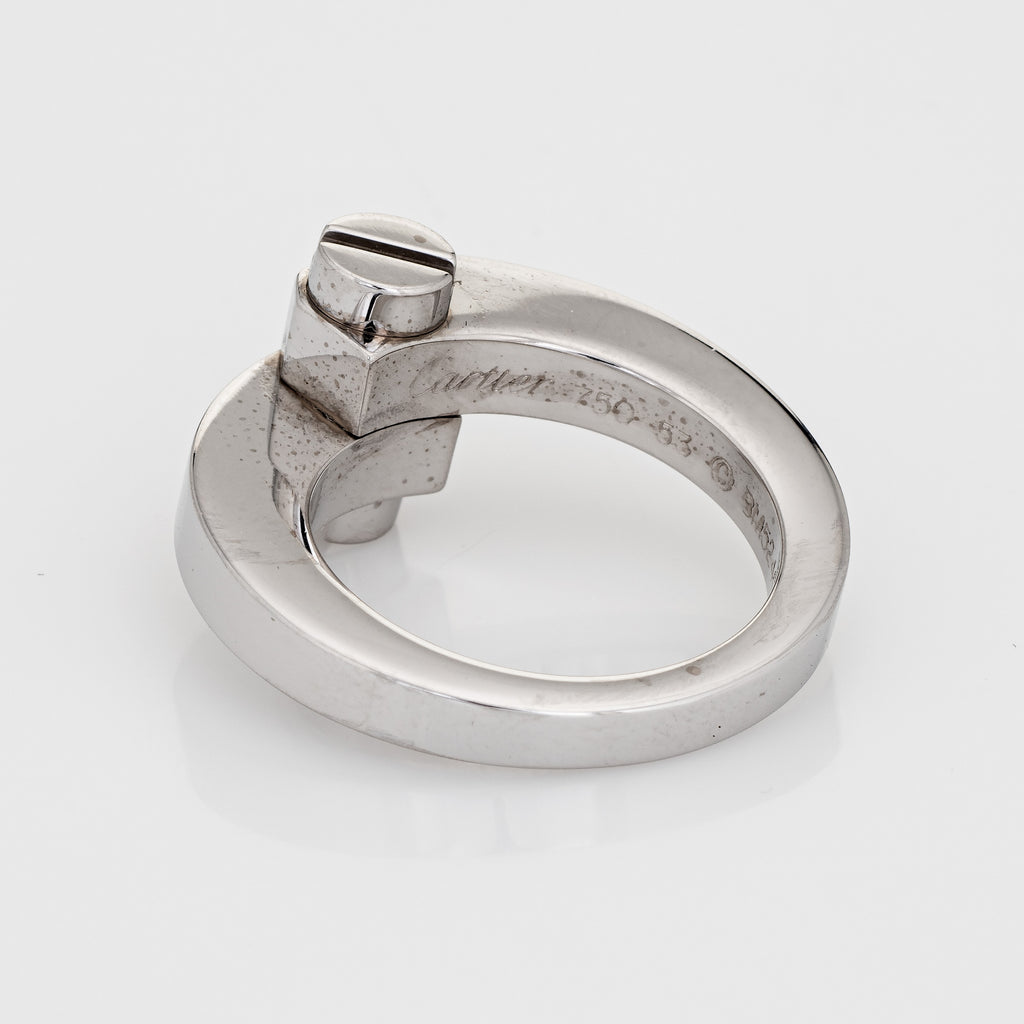 Metal & Hallmark: 18k white gold. The ring is hallmarked "750" for 18k gold, the European ring size "53", "Cartier" along with the serial number.
