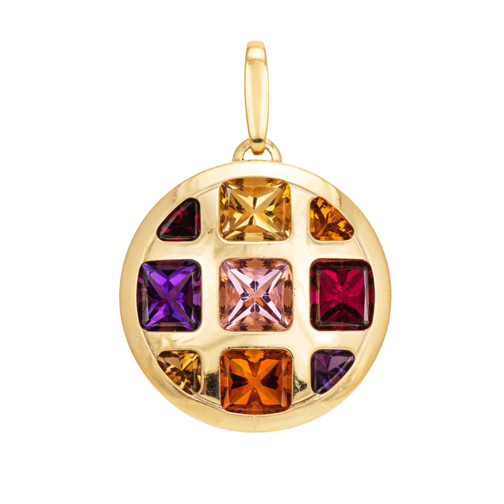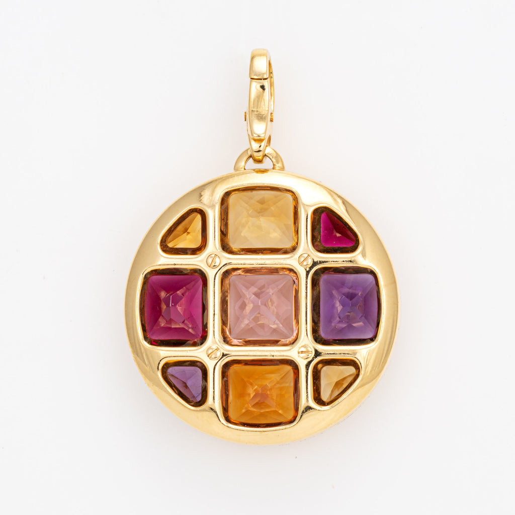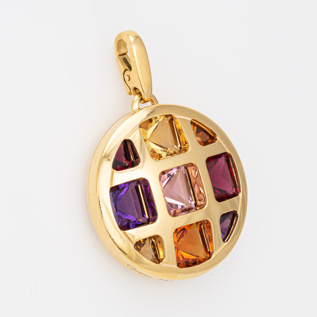 Stylish pre-owned Cartier 'Pasha' multi gemstone pendant crafted in 18k yellow gold.