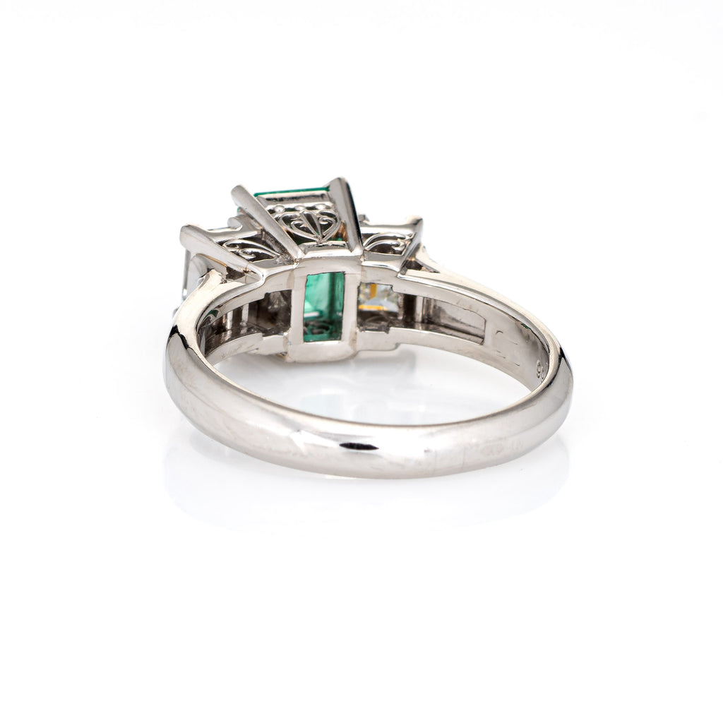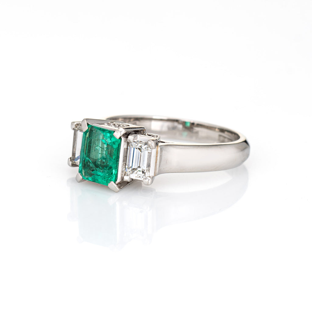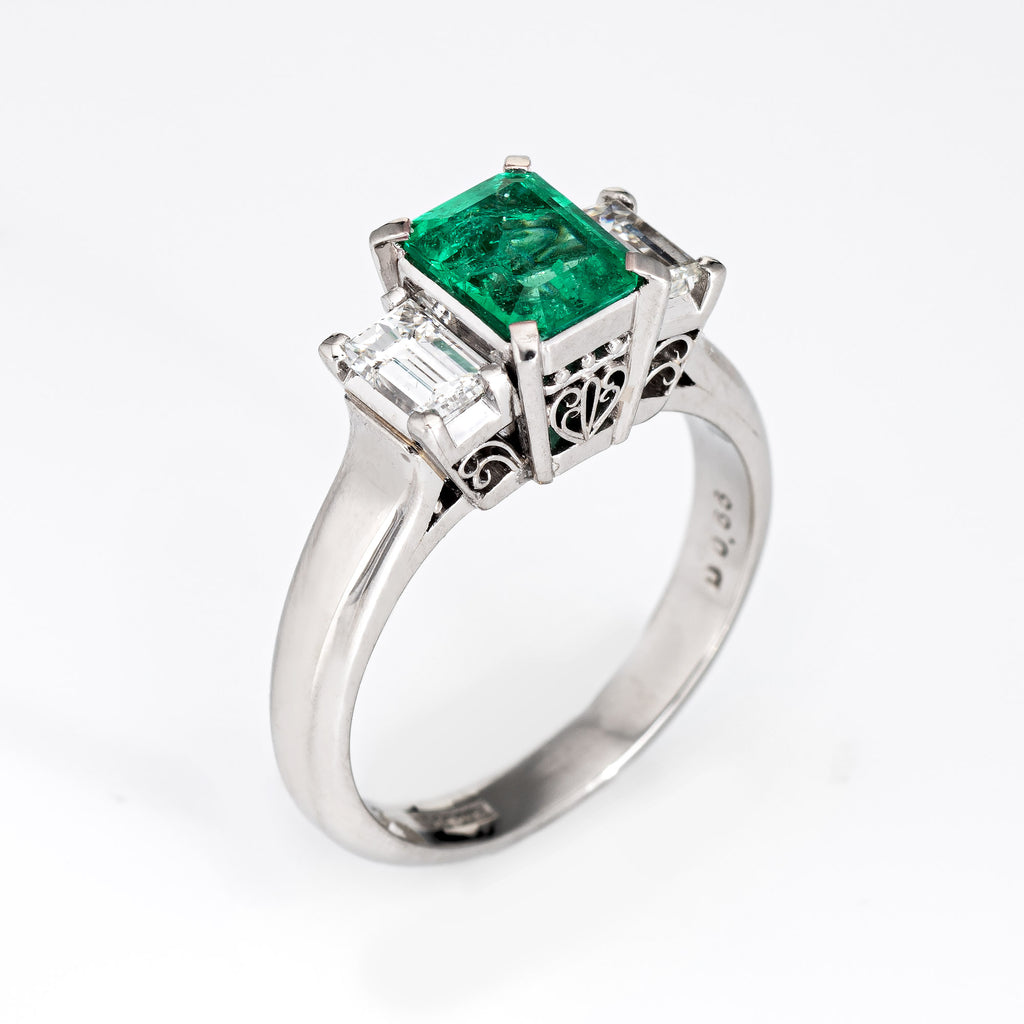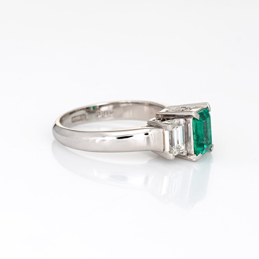 Stylish estate natural emerald & diamond ring crafted in 900 platinum.