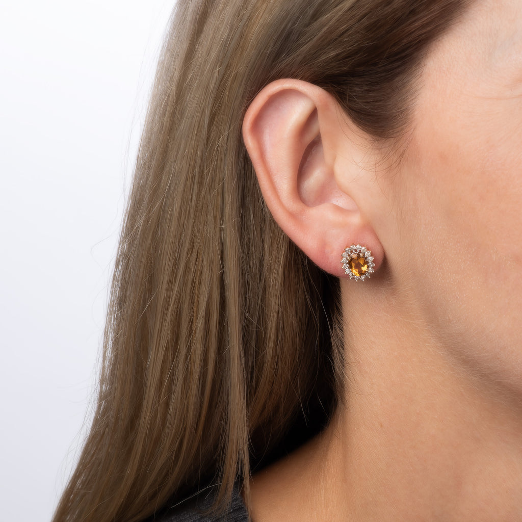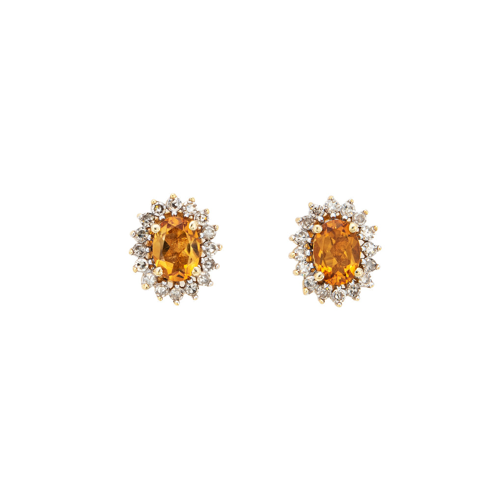Stones: Oval faceted citrines measure 7mm x 5mm, accented with an estimated 0.25 carats of diamonds (estimated at I-J color and SI2-I2 clarity).