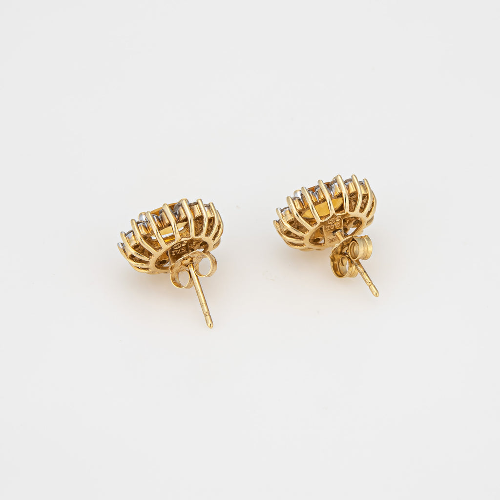 Finely detailed pair of citrine and diamond stud earrings crafted in 14k yellow gold.