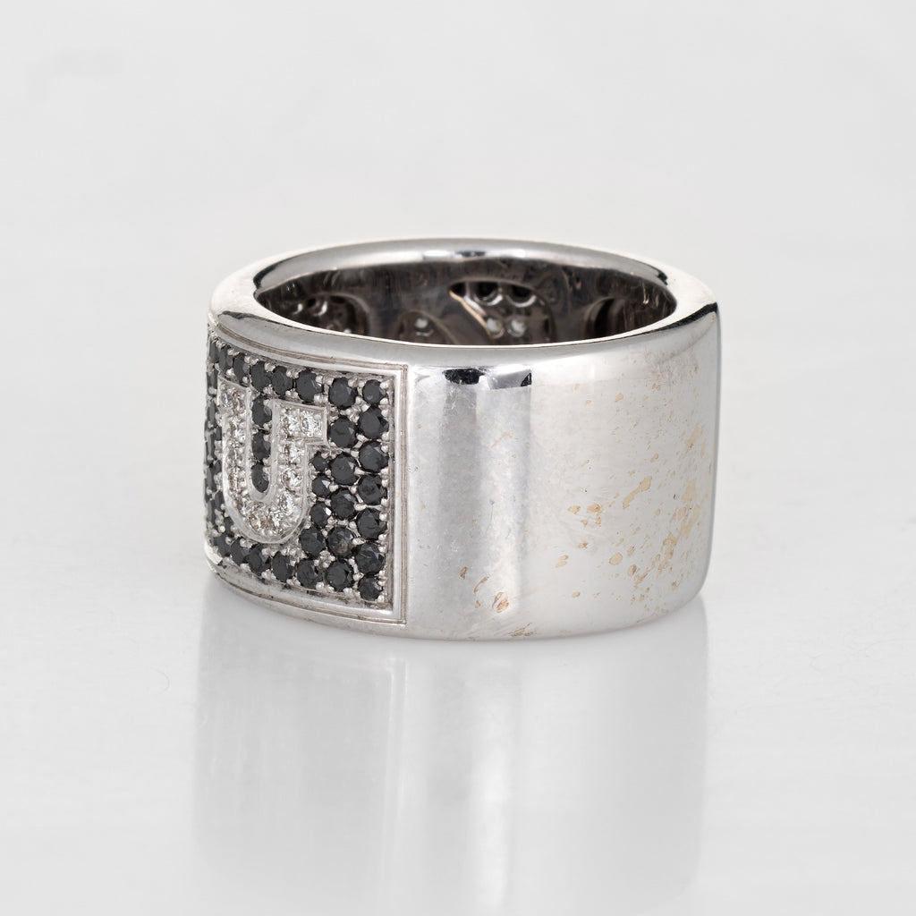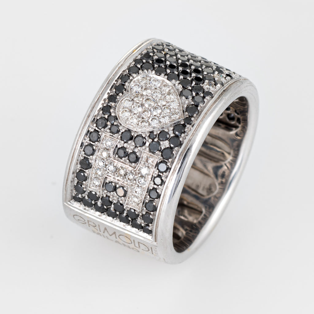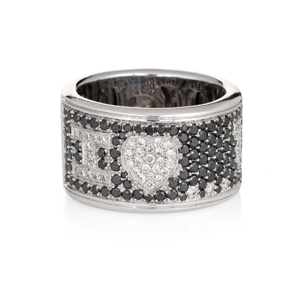 Di Grimoldi I Love You Ring Black Diamond Wide Band 18k Gold Sz 7 Estate