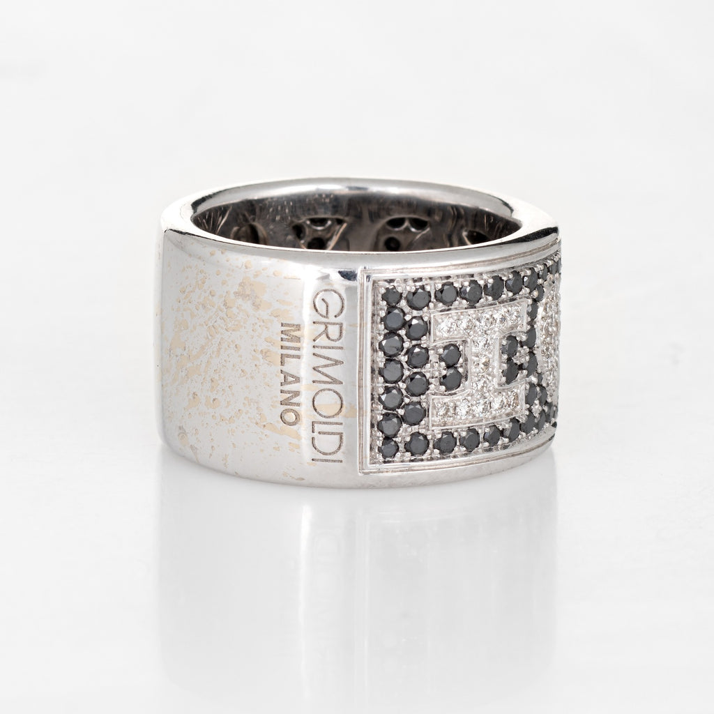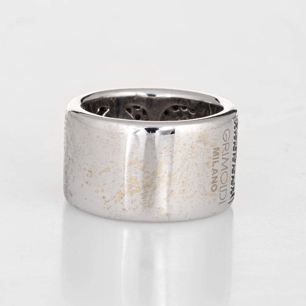 Metal & Hallmark: 18 karat white gold. The ring is hallmarked "750" for 18 karat gold and "Di Grimoldi"
