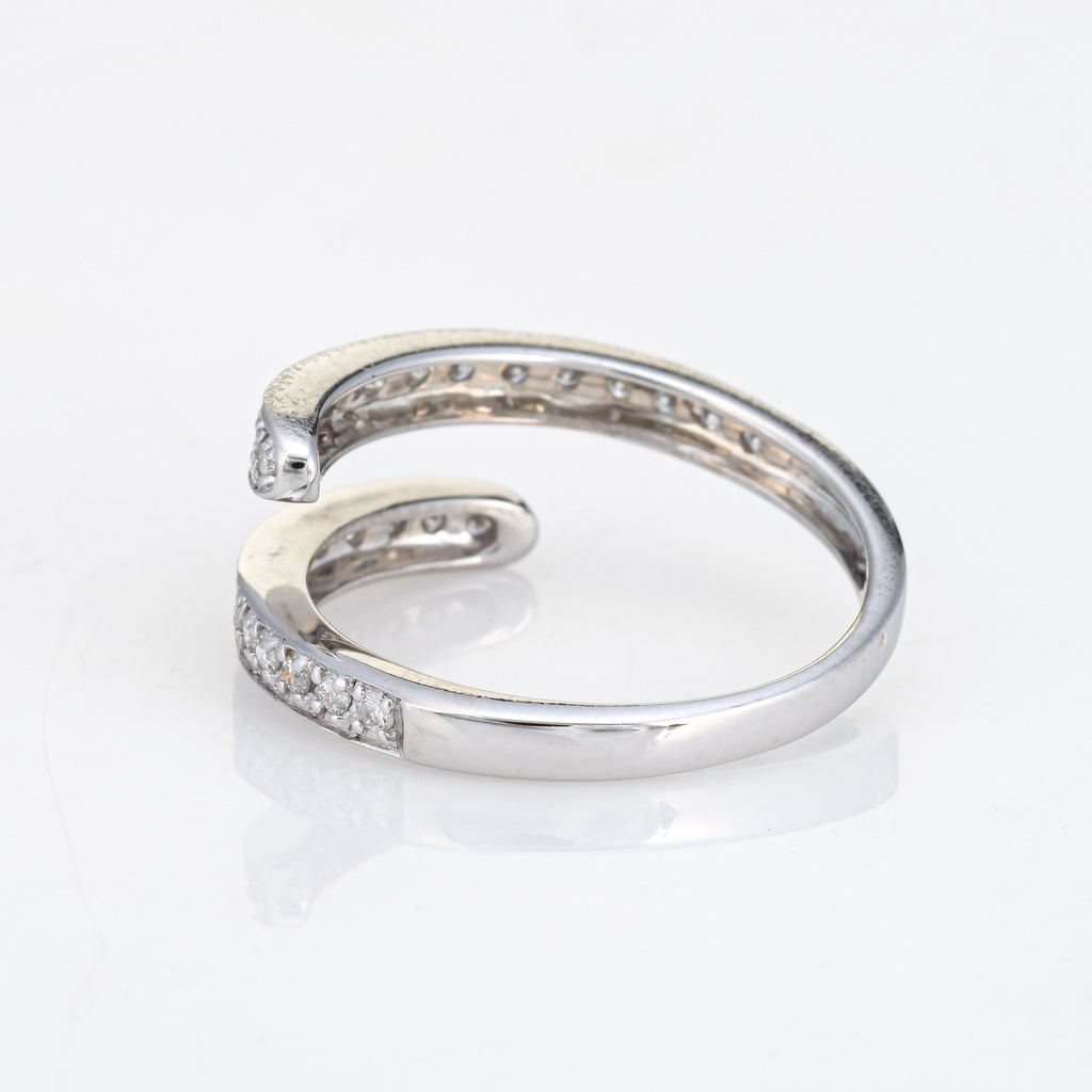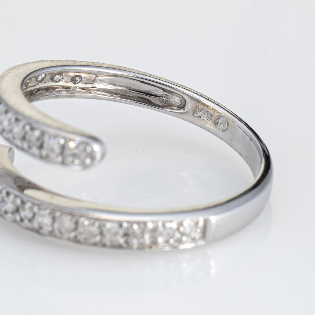 Diamond Bypass Band Sz 8.5 Estate 14k White Gold Ring Fine Jewelry