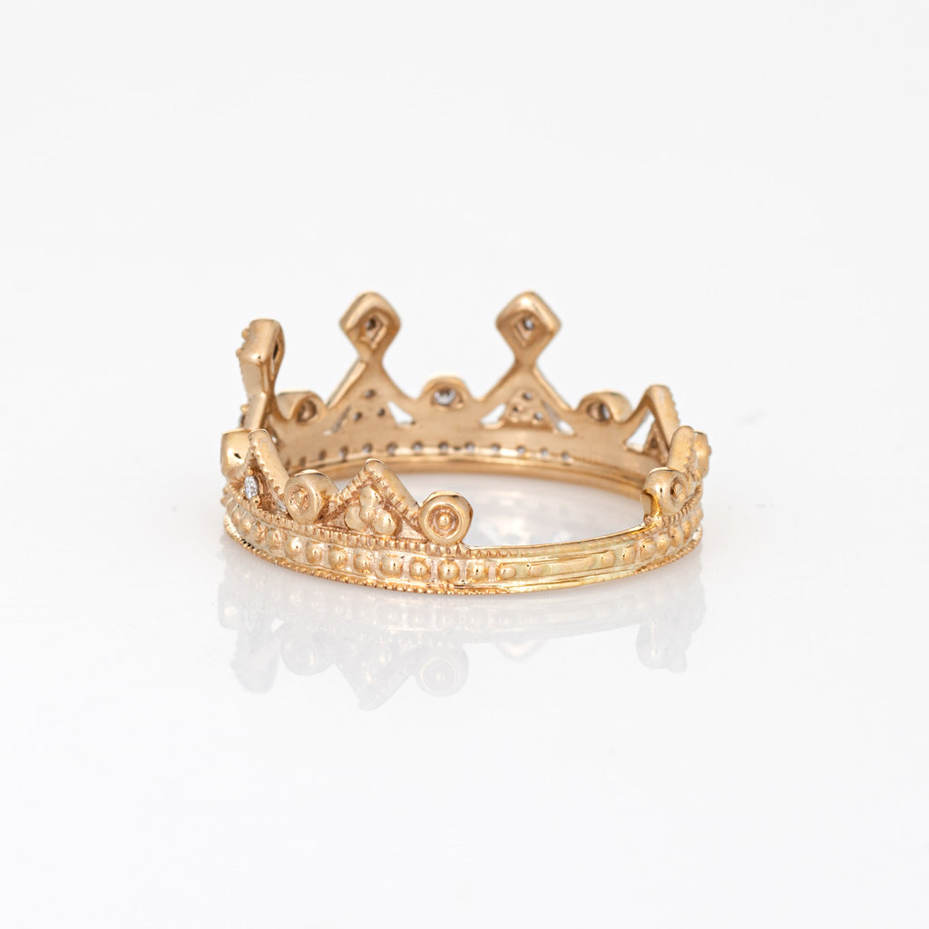 Diamond Crown Ring Estate 10k Yellow Gold Tiara Fine Jewelry Sz 7.5