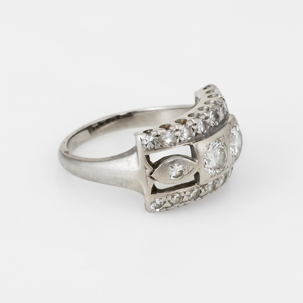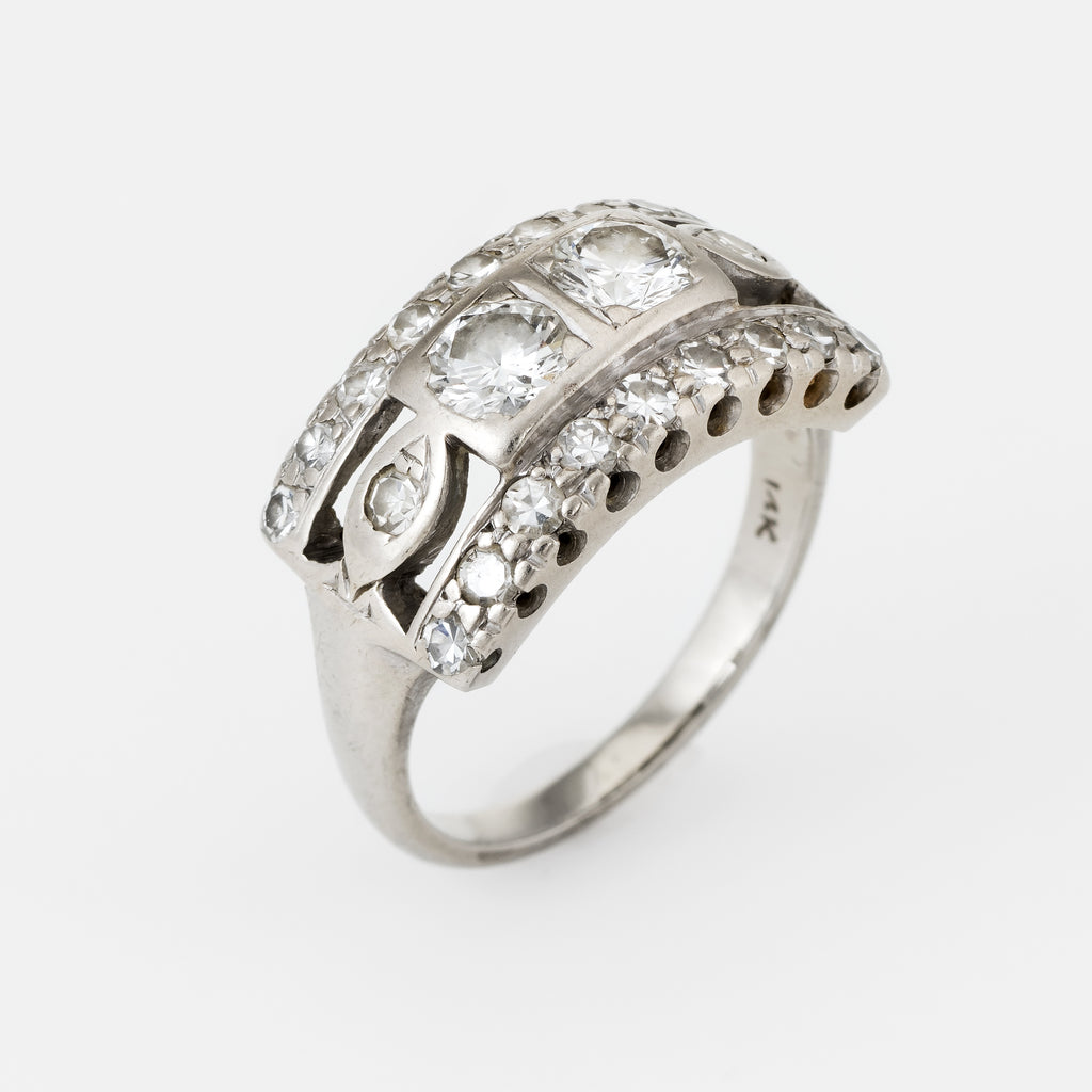 Elegant vintage diamond band (circa 1940s to 1950s), crafted in 14 karat white gold.
