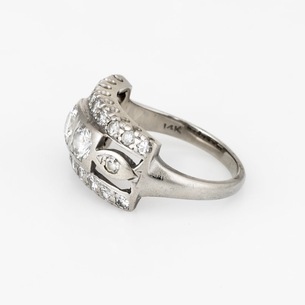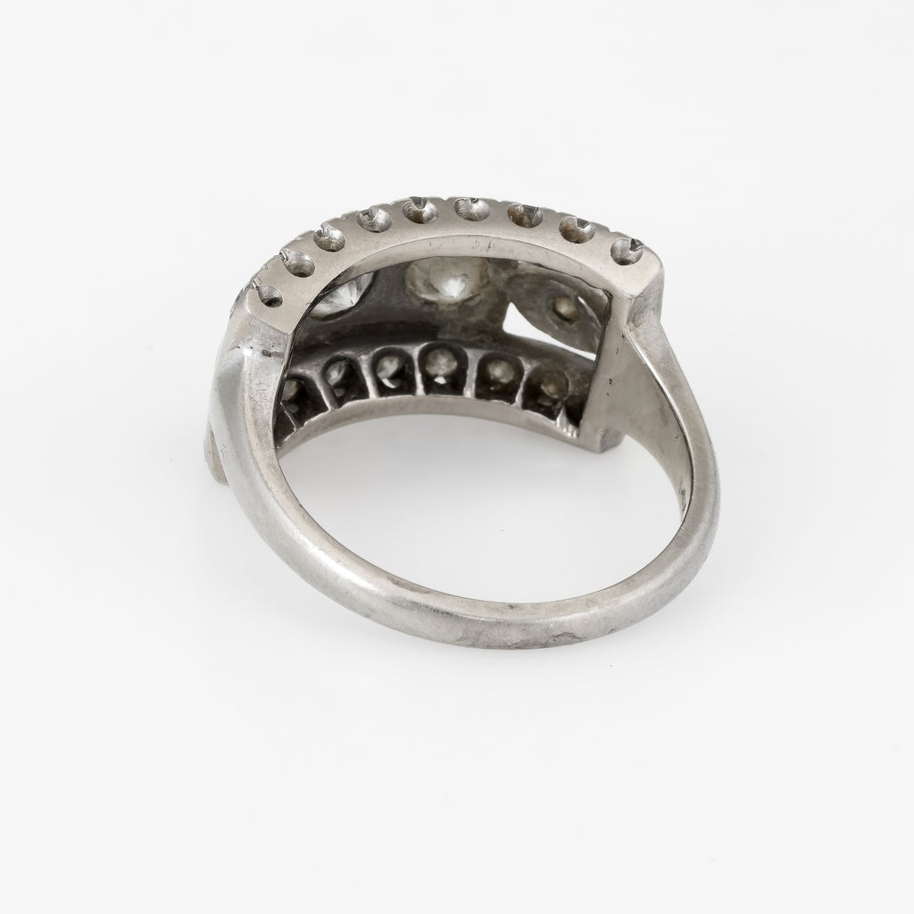 Double Diamond Band Ring Vintage 14k White Gold Estate Fine Jewelry Sz 5 1/2