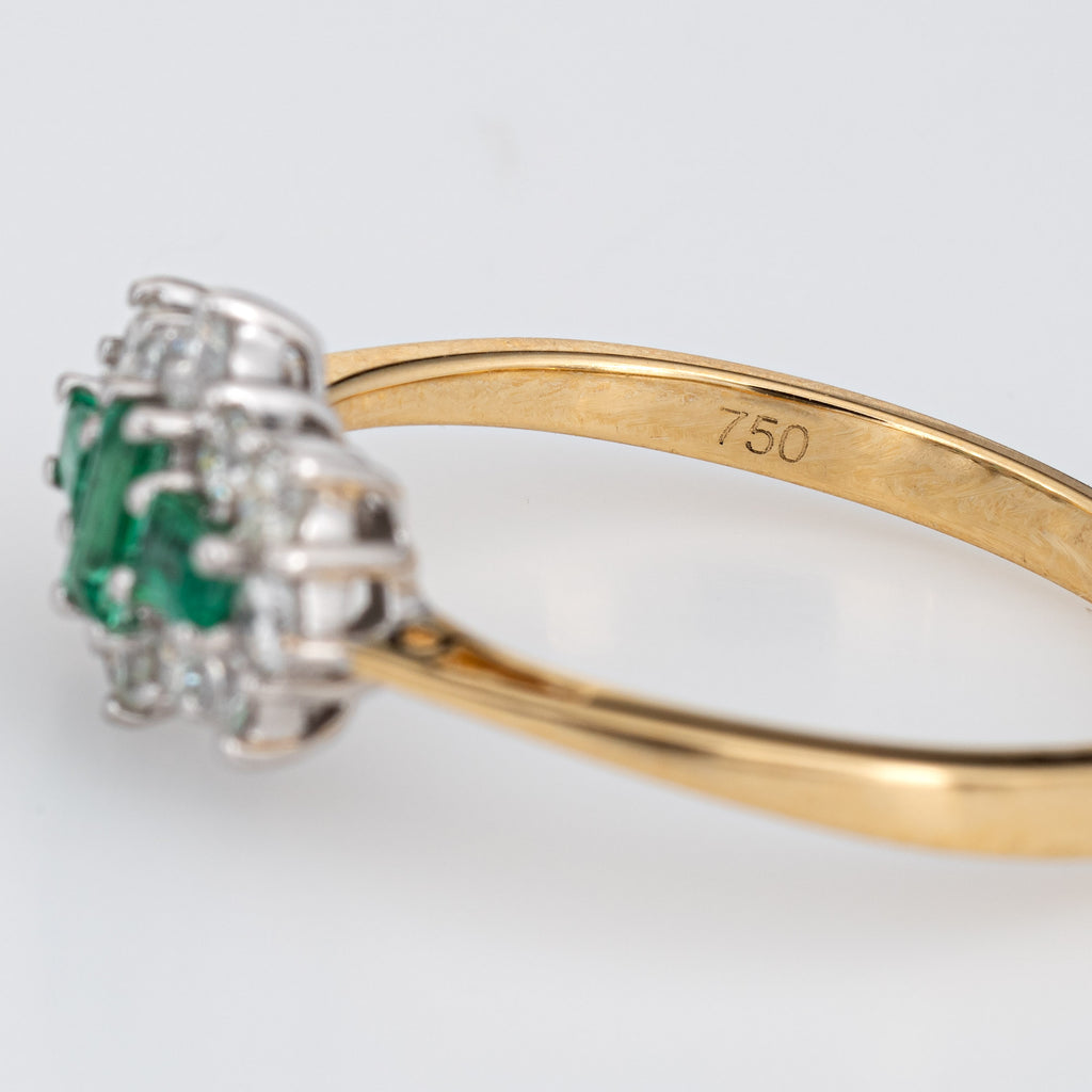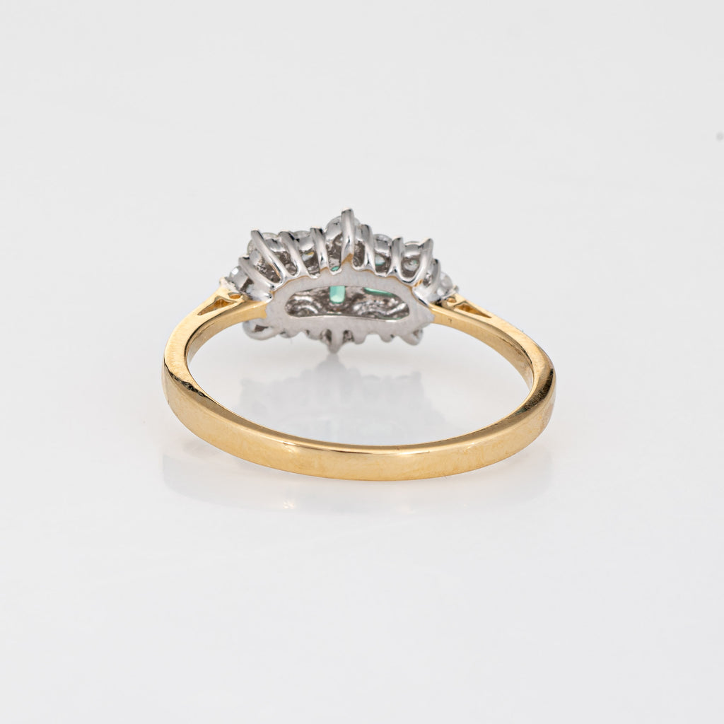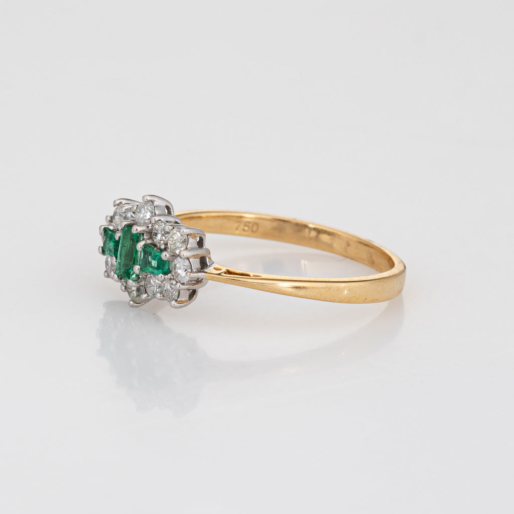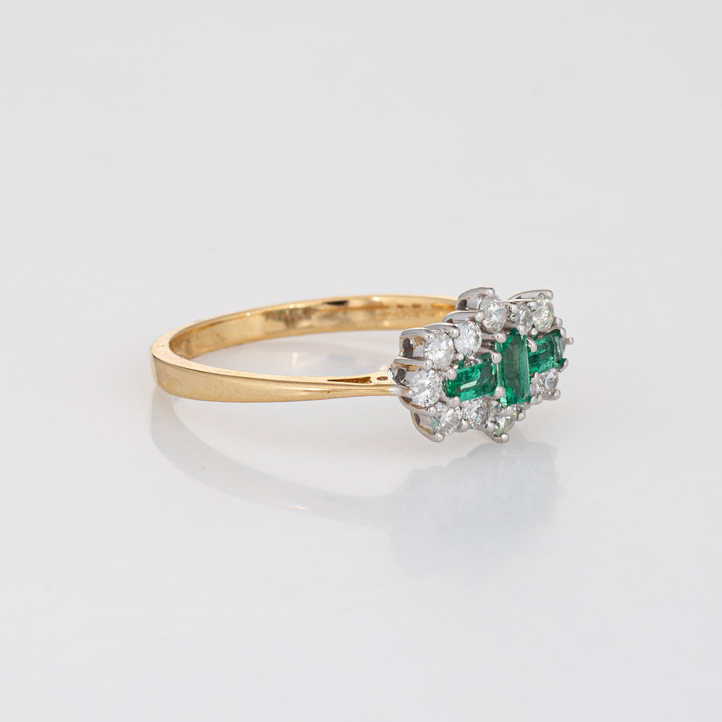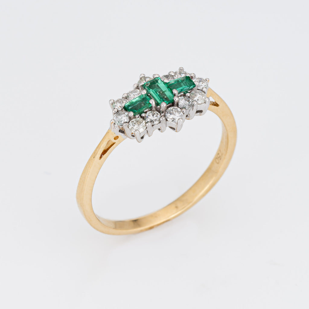 Stylish vintage emerald & diamond ring crafted in 18 karat yellow gold.