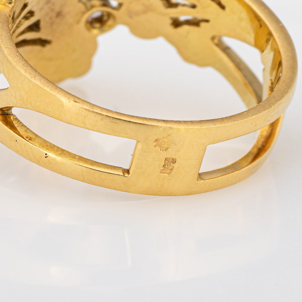 Metal & Hallmark: 18 karat yellow gold. The ring features the French eagle hallmark (gold content mark for 18k gold)