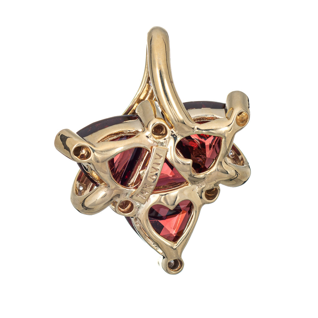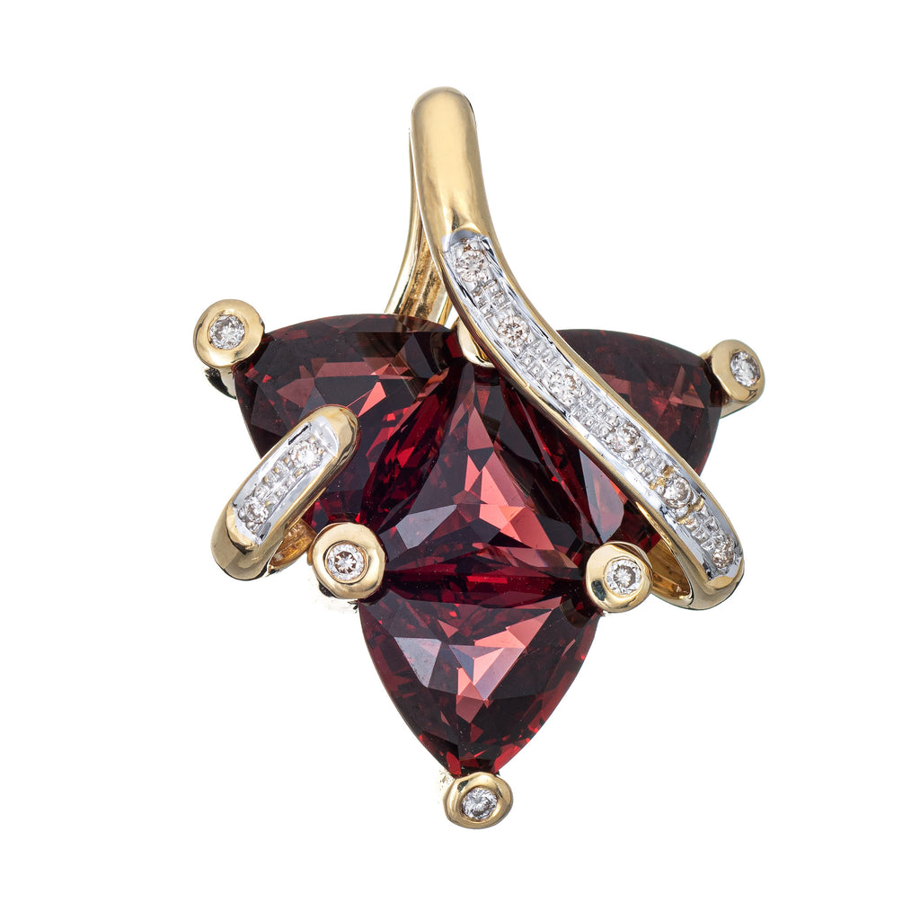 Garnet Diamond Pendant Vintage 14k Yellow Gold Estate Fine Jewelry Triangle