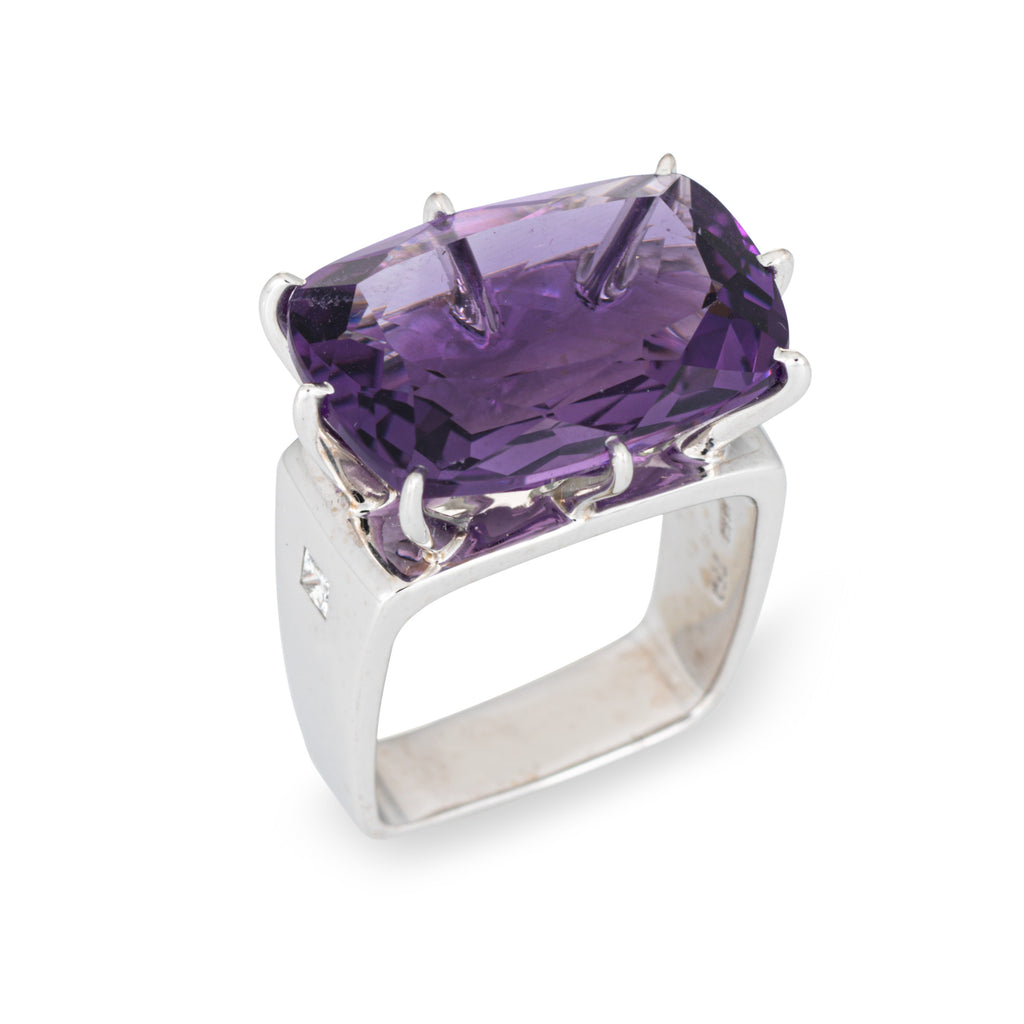 Stylish H Stern Amethyst & diamond ring crafted in 18 karat white gold.