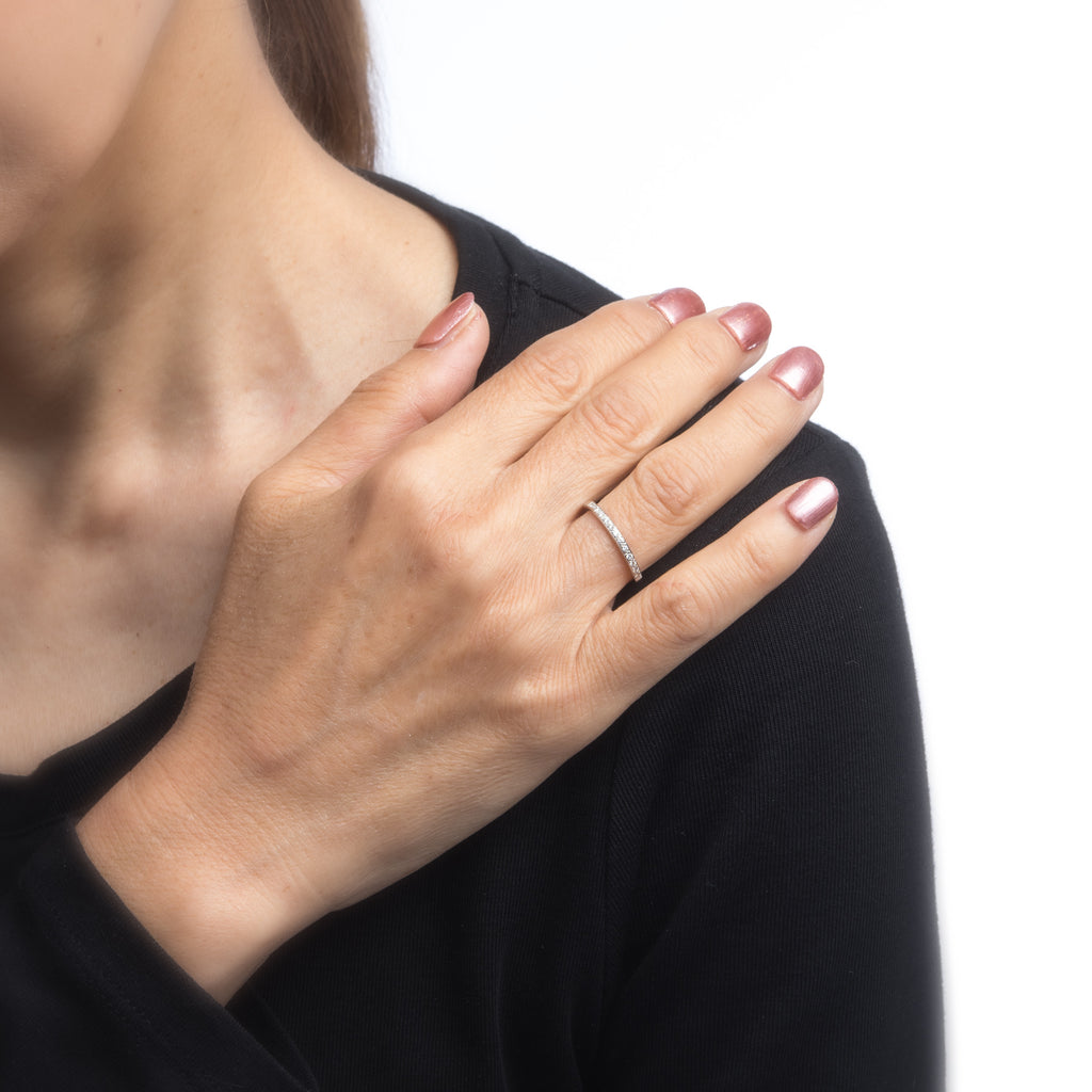 Half Diamond Band Estate 18k White Gold Sz 5 1/4 Fine Stacking Jewelry Stacker