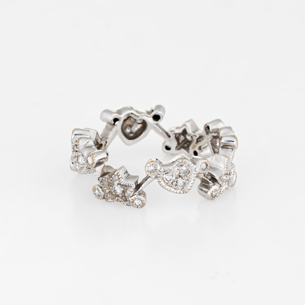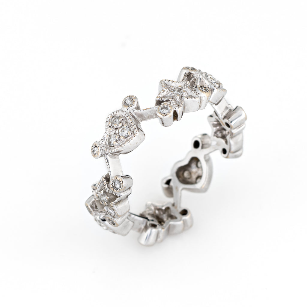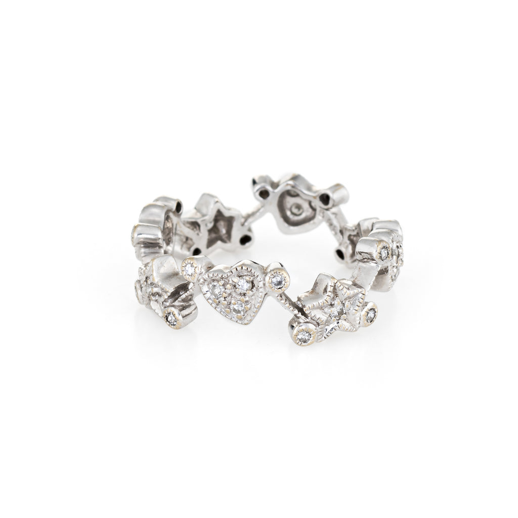 Heart Star Diamond Ring Sz 5.5 Eternity Band Estate 18k White Gold Fine Jewelry