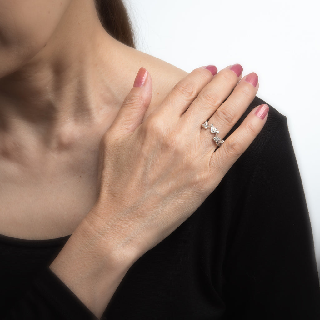 The stylish design features a heart and star design interconnected around the entire ring. A great ring to wear as an alternative engagement ring or stacked with your fine jewelry from any era.