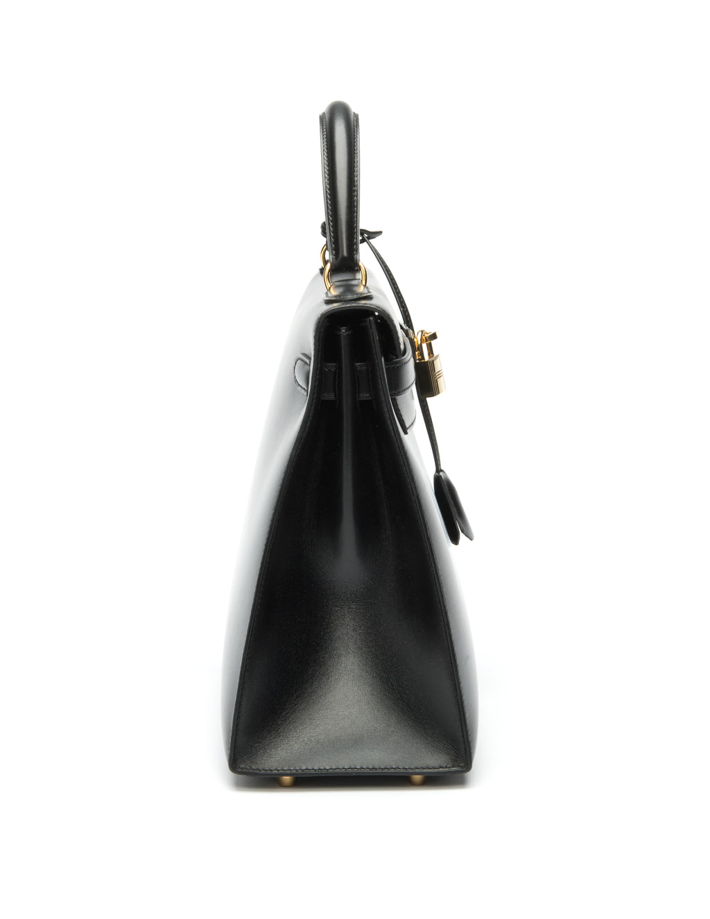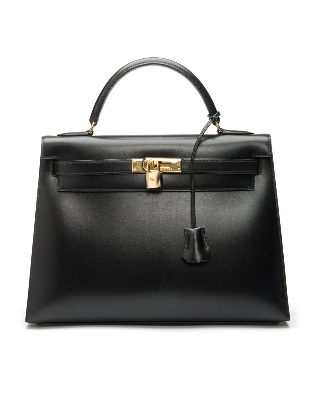 Elegant vintage Hermes Kelly 32cm handbag with yellow gold-tone hardware.