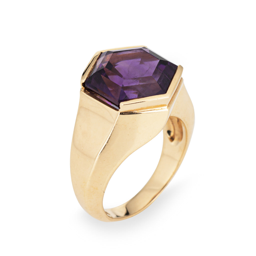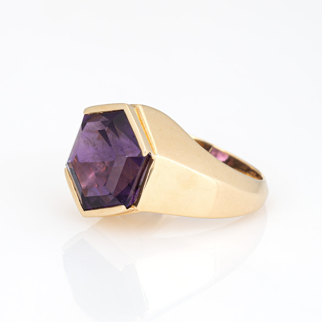 Hexagonal Amethyst Ring Vintage 14k Yellow Gold Sz 7 Estate Fine Jewelry