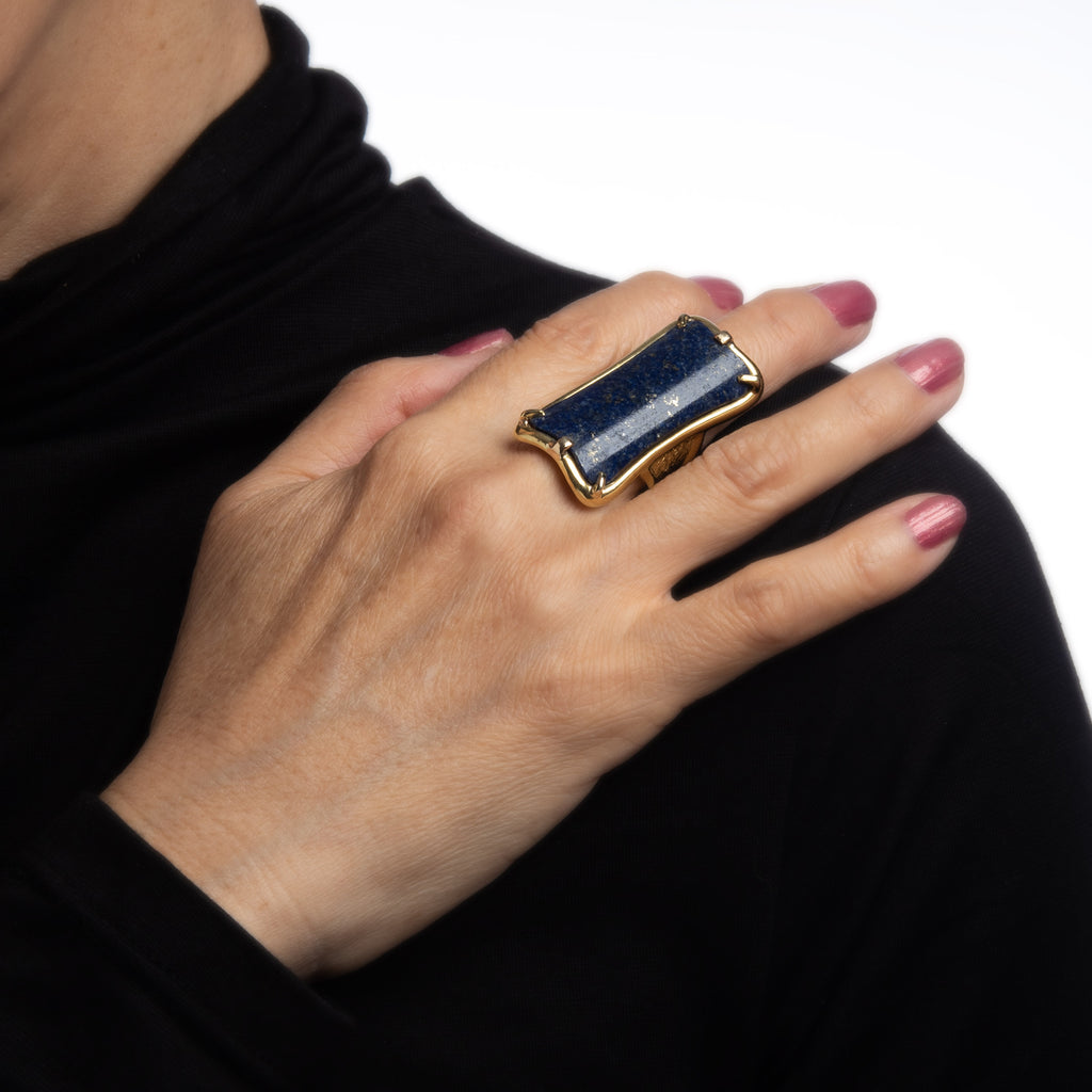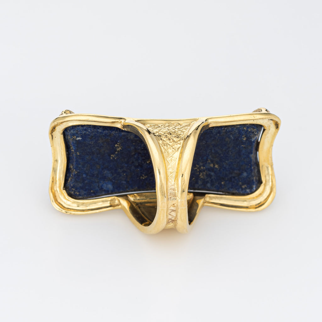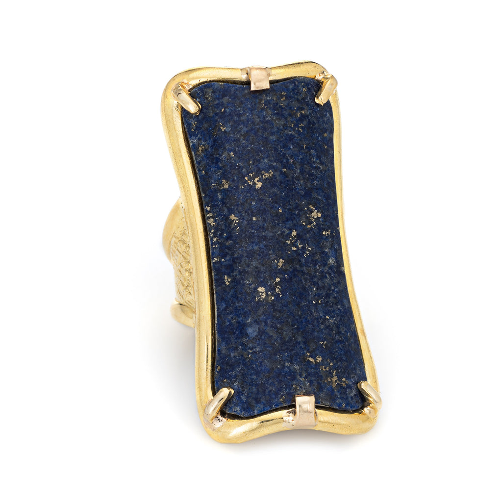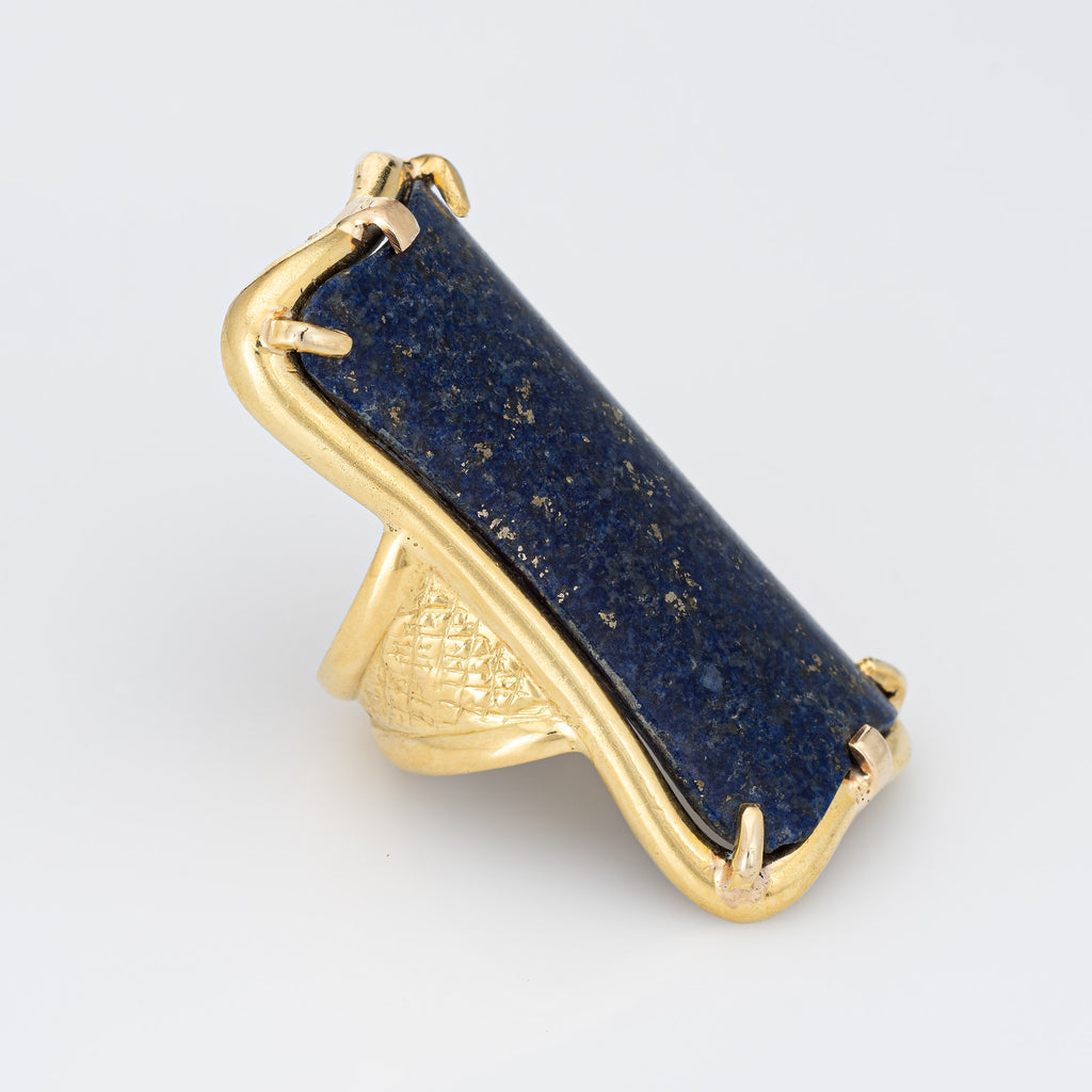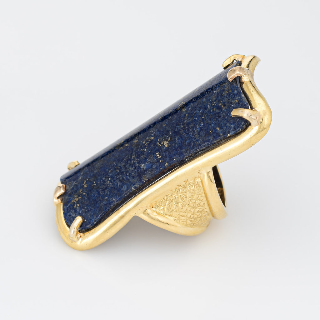 Stylish vintage lapis lazuli cocktail ring (circa 1960s to 1970s) crafted in 18 karat yellow gold.