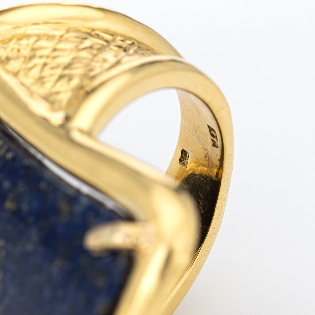 Huge Lapis Lazuli Ring Vintage 18k Yellow Gold Cocktail Jewelry Sz 5 Estate