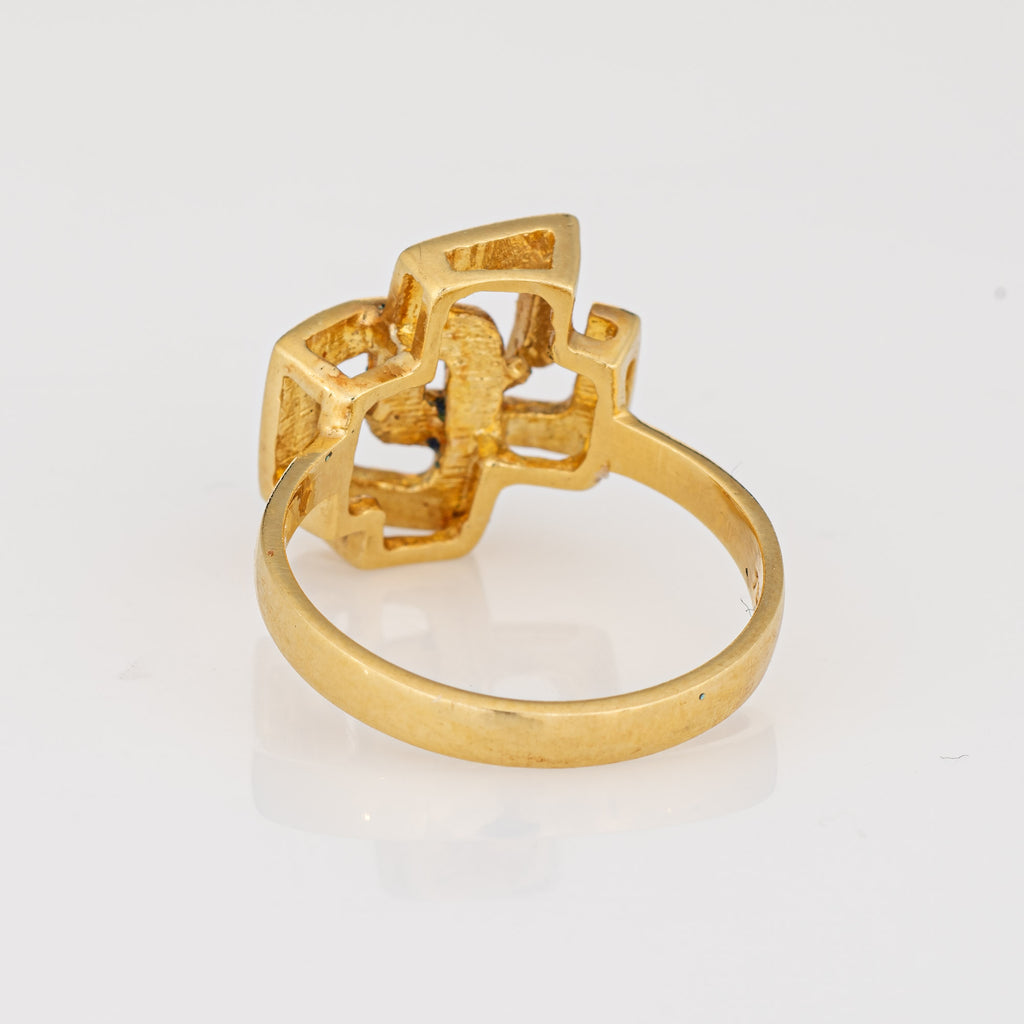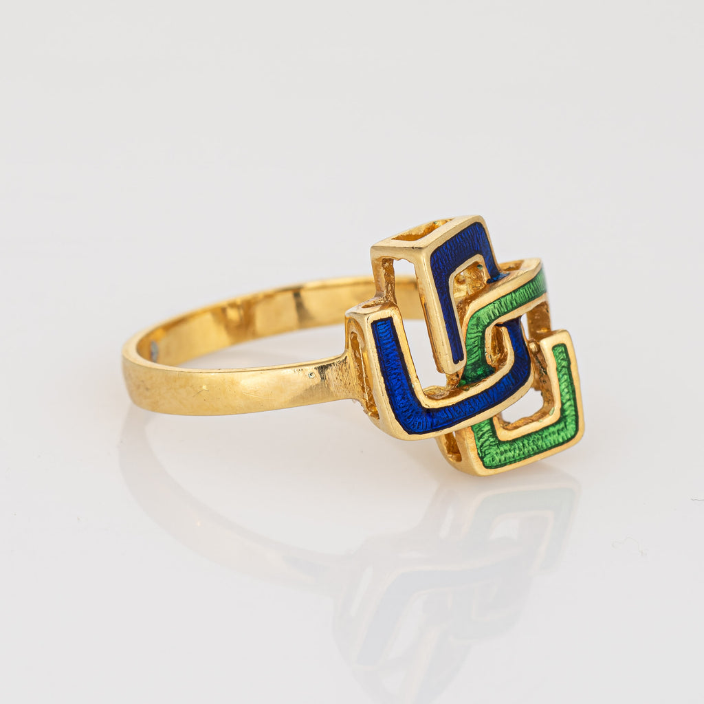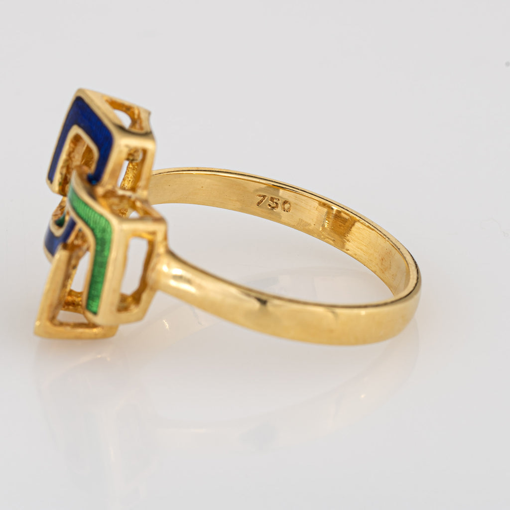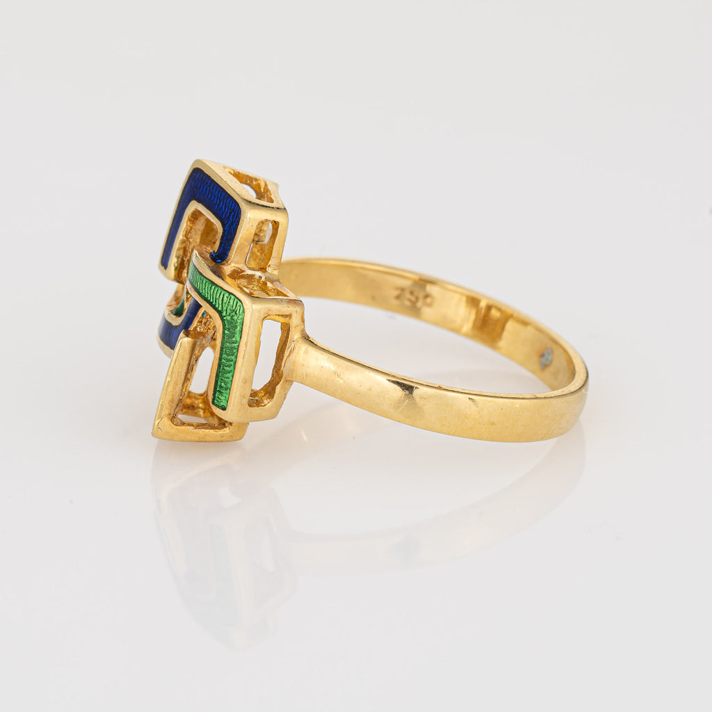 Interlocking Square Infinity Ring 6 Vintage Green Blue Enamel 18k Yellow Gold