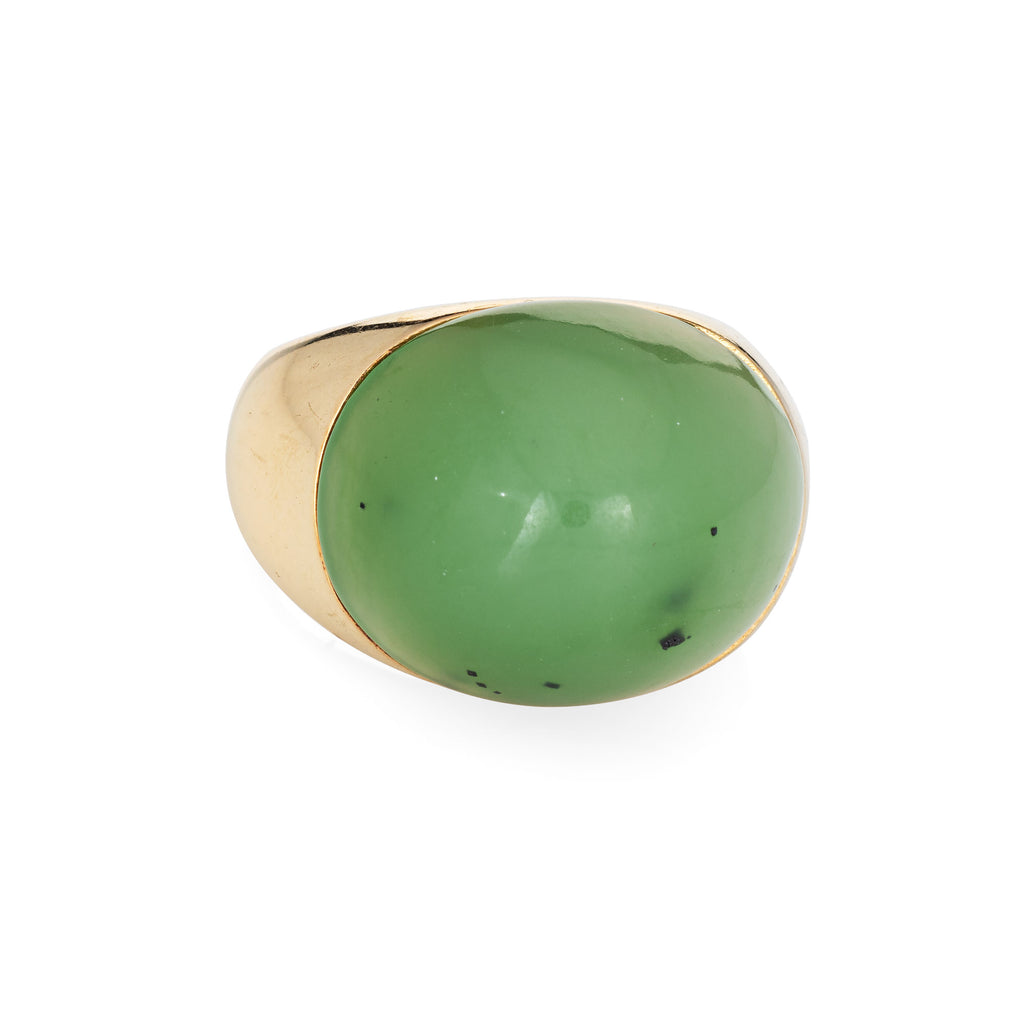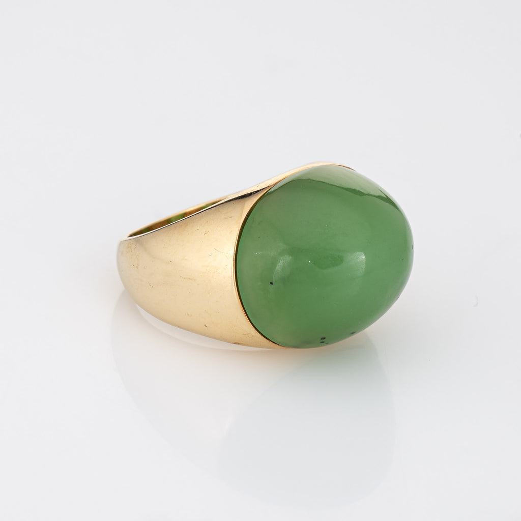 Jade Dome Ring Vintage 14k Yellow Gold Sz 6.25 Estate Fine Cocktail Jewelry