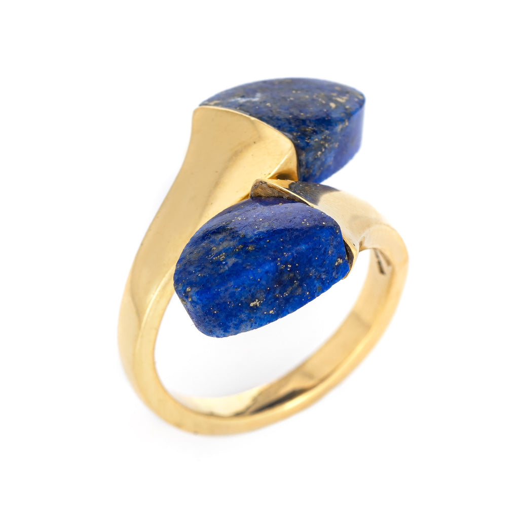 Lapis Lazuli Bypass Ring Vintage 18k Yellow Gold Sz 5 Moi et Toi Estate Jewelry