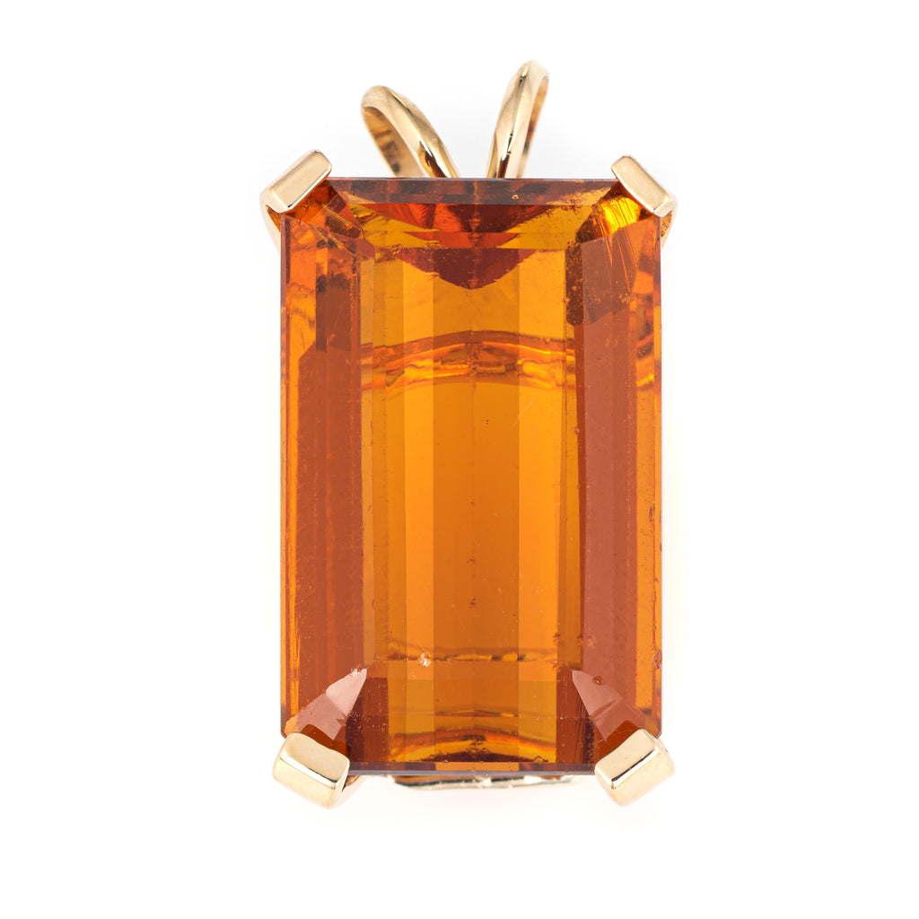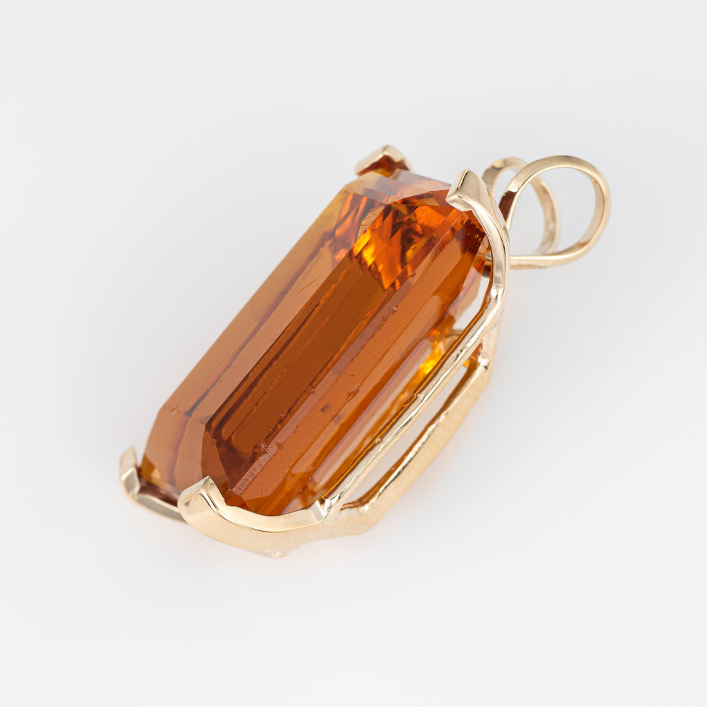 Large 30ct Madeira Citrine Pendant Vintage 14k Yellow Gold Fine Emerald Cut
