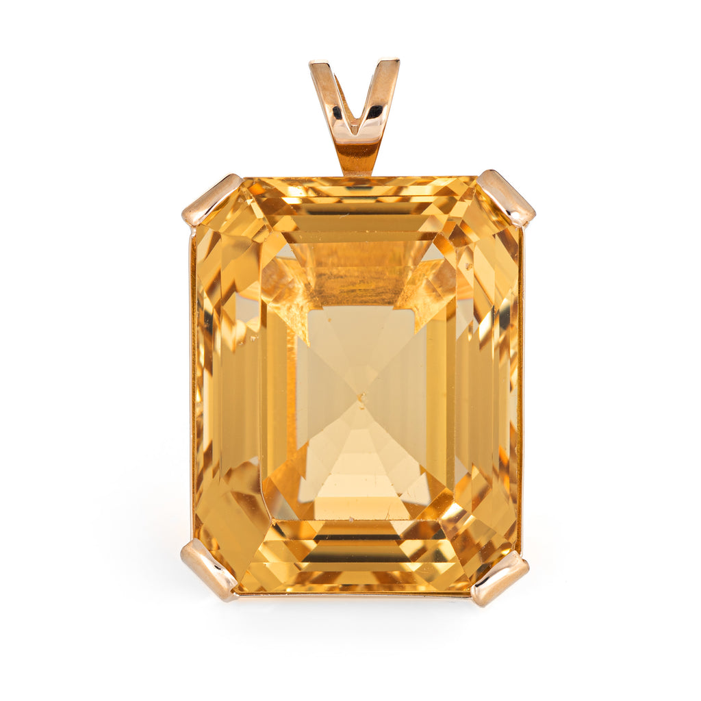 Stones: Stones: The citrine measures 23mm x 18mm (estimated at 43 carats). The citrine is in very good condition (few small chips visible under a 10x loupe).