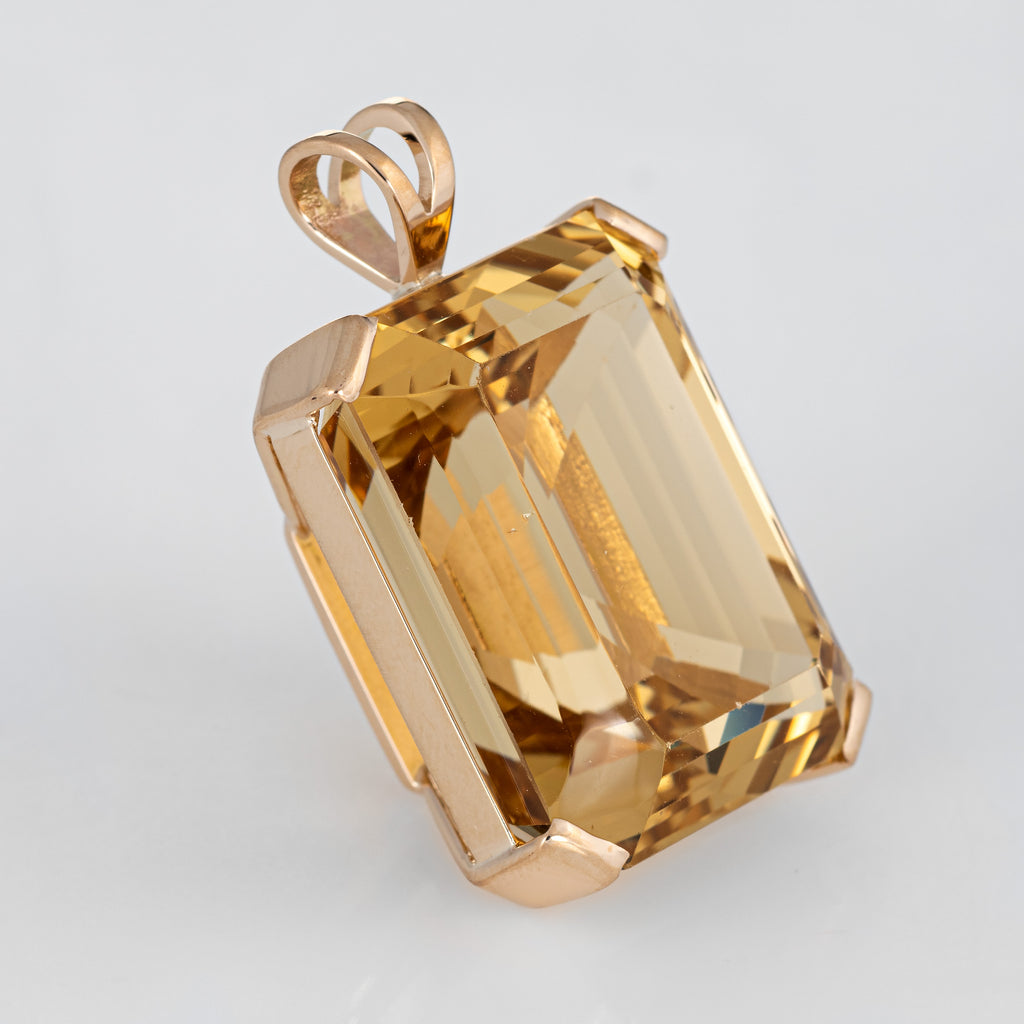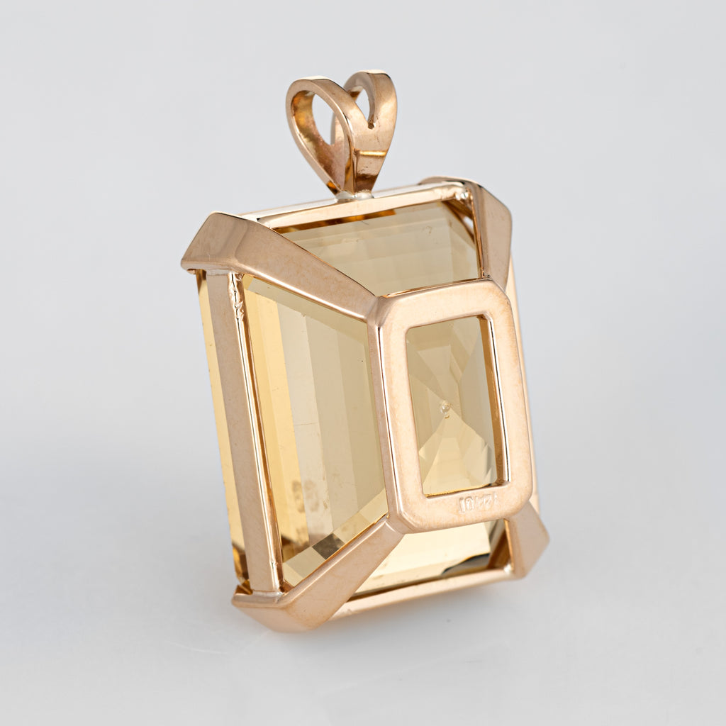 Finely detailed large vintage citrine pendant (circa 1960s to 1970s) crafted in 14k yellow gold.