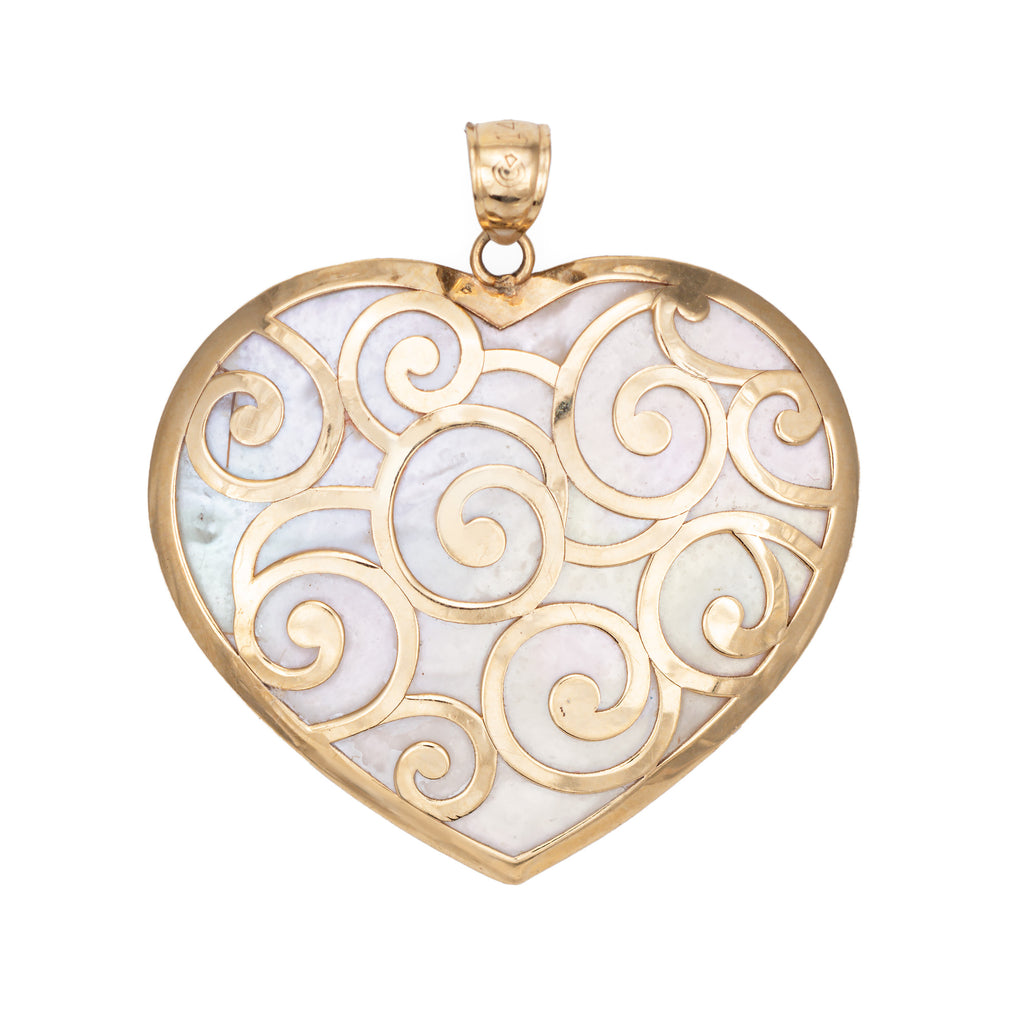 Large Heart Pendant 14k Yellow Gold Mother of Pearl Estate Fine Jewelry