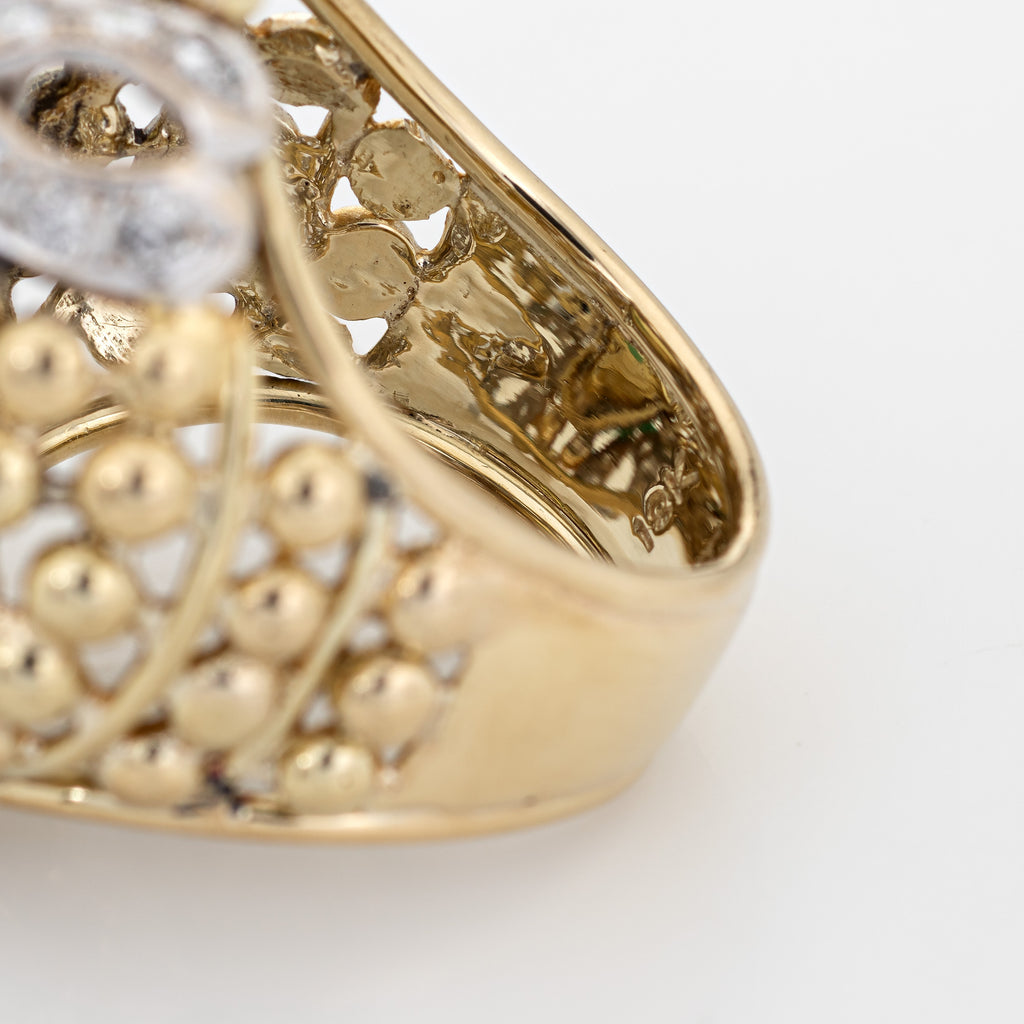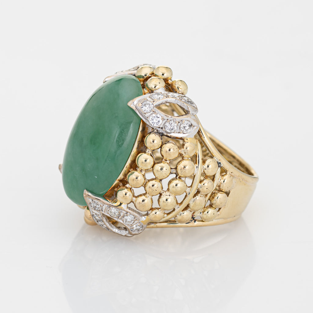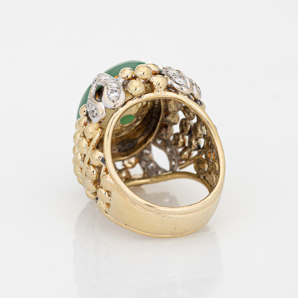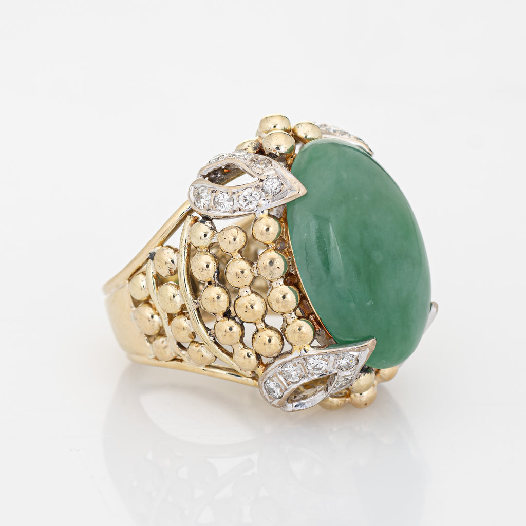 Large Jade Diamond Ring Vintage 60s Cocktail Jewelry 18k Yellow Gold Sz 8.5