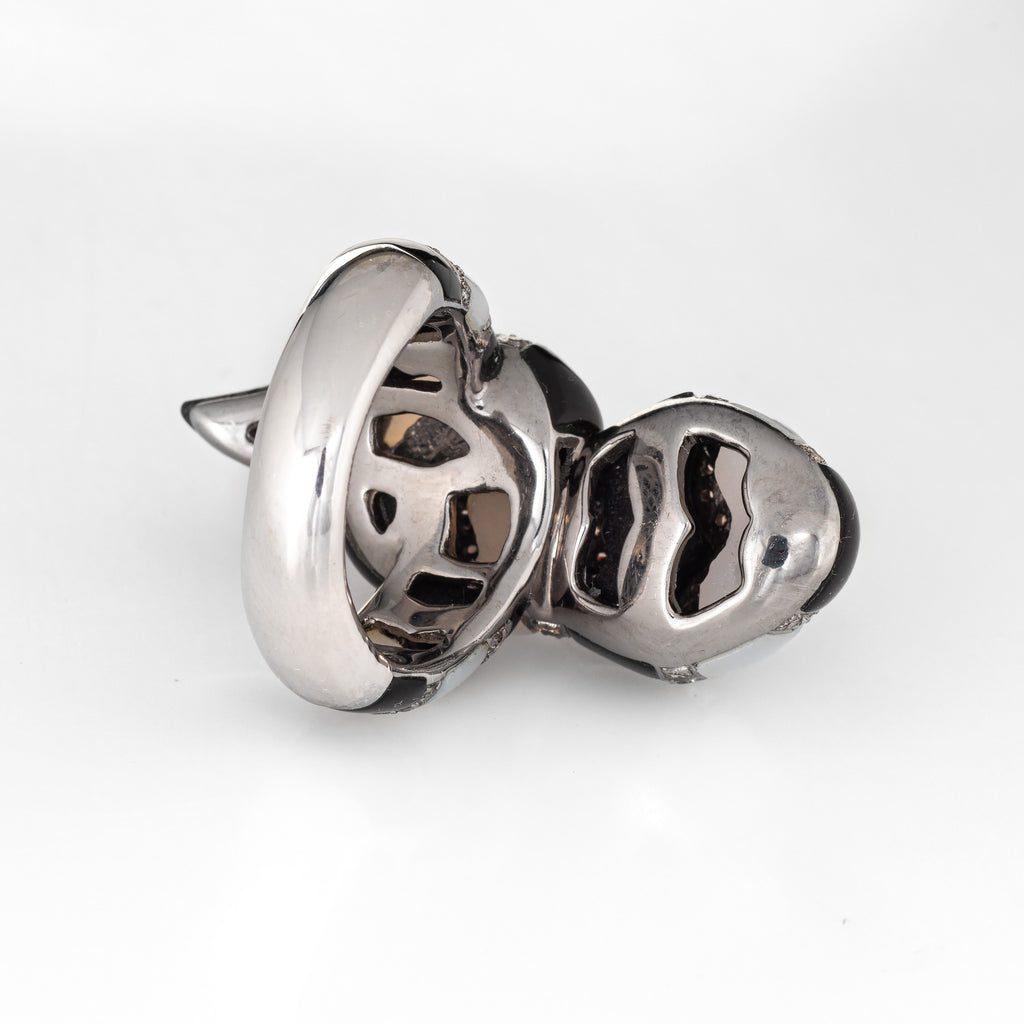 Large Snake Ring Estate Diamond Black Onyx Chalcedony 18k White Gold 7 Serpent