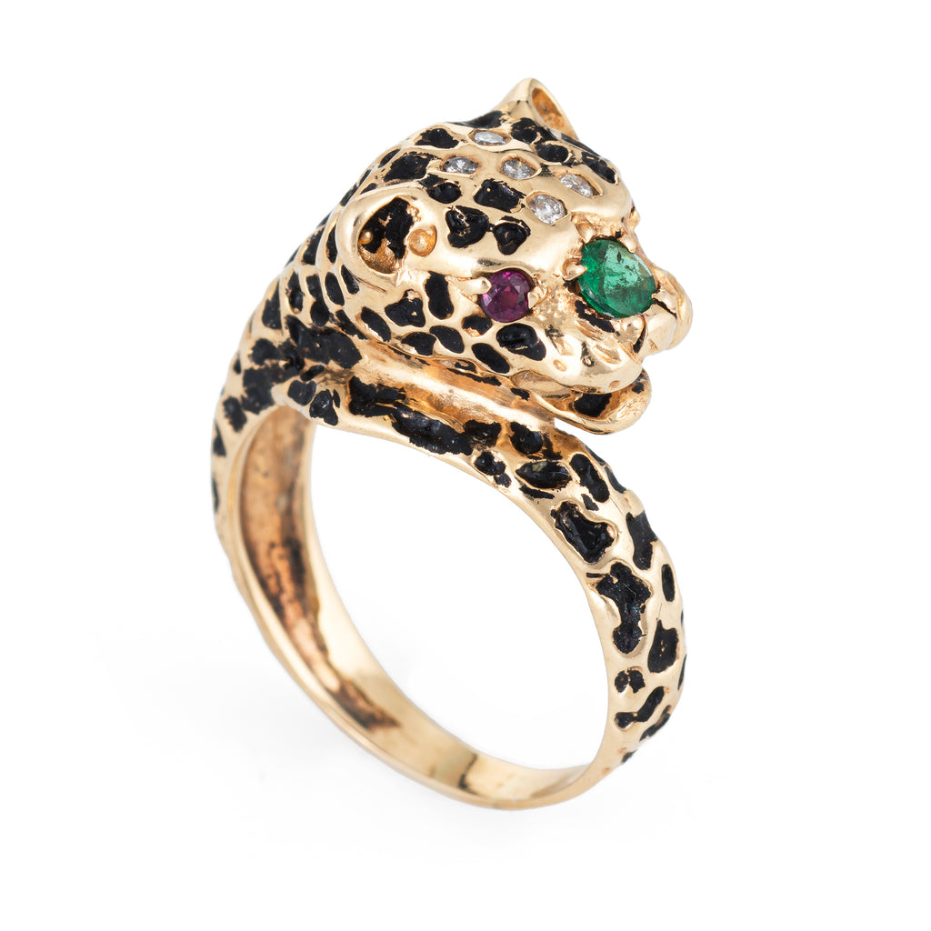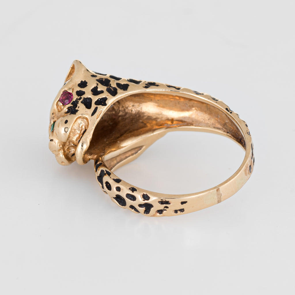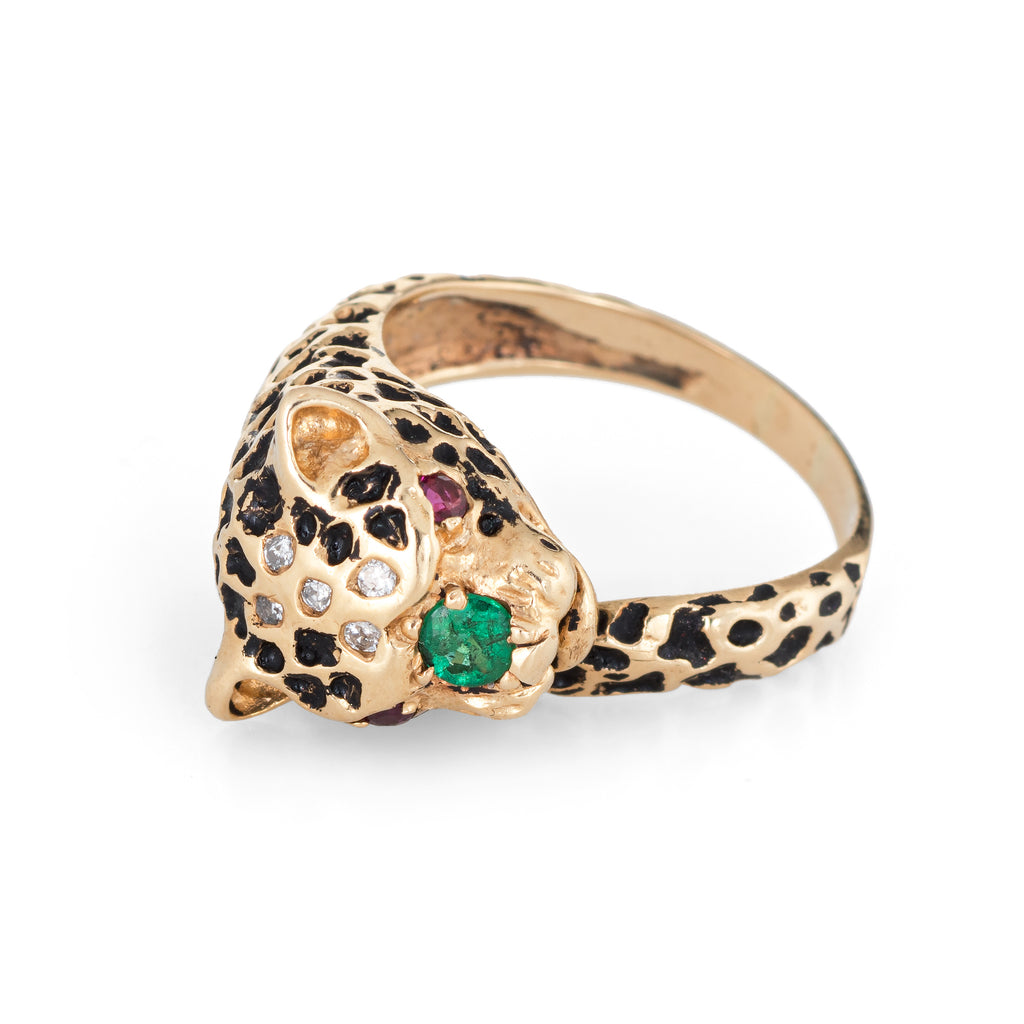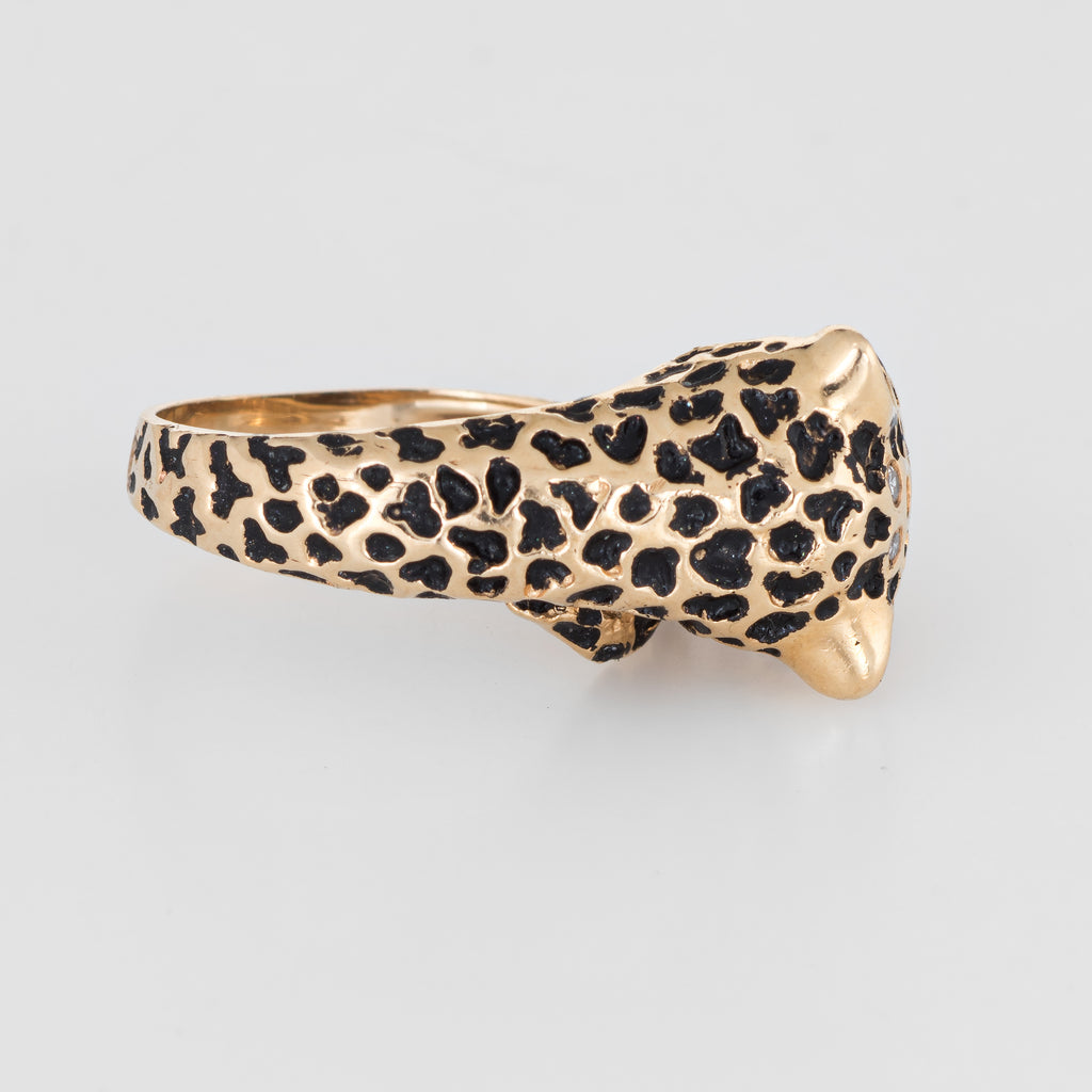 Finely detailed vintage leopard ring (circa 1960s to 1970s) crafted in 14 karat yellow gold.