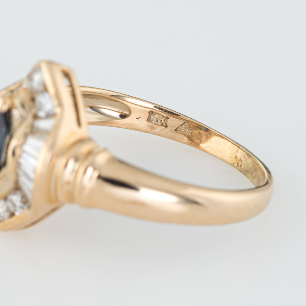 Stylish vintage sapphire & diamond cocktail ring crafted in 14 karat yellow gold.