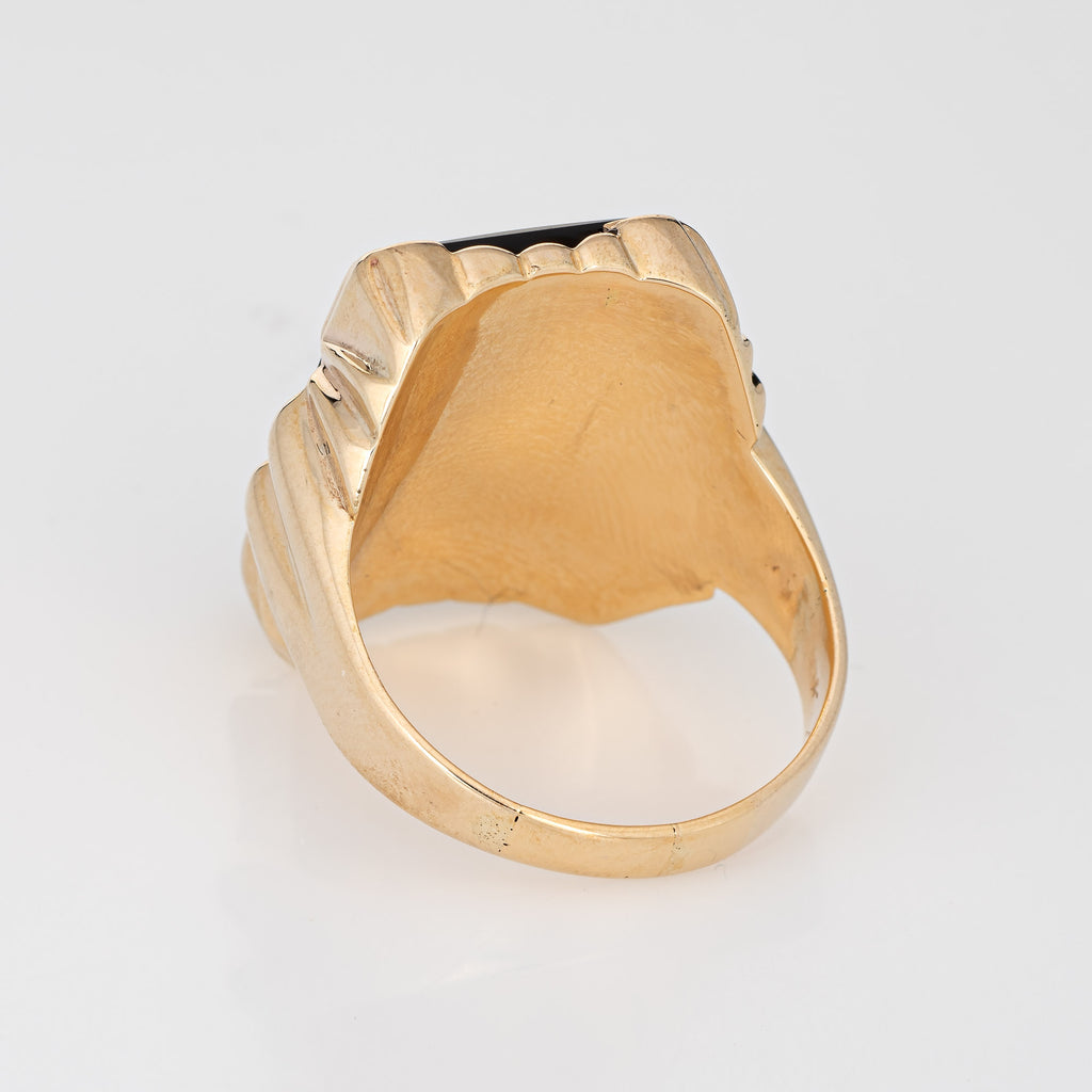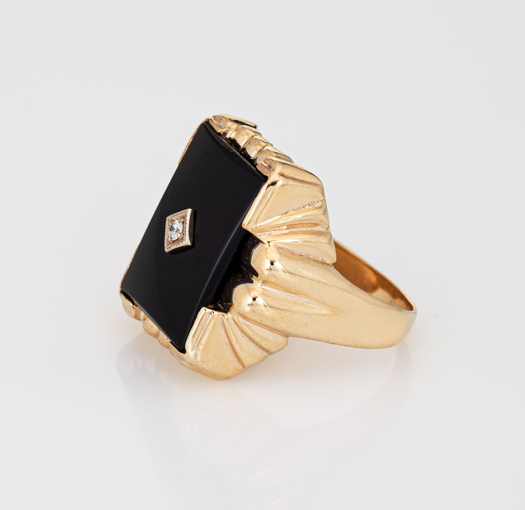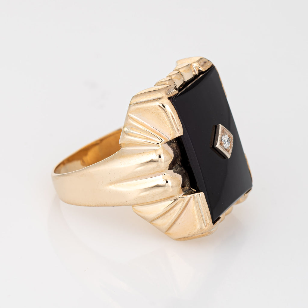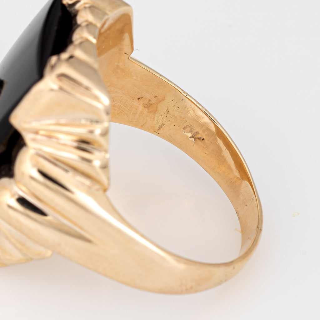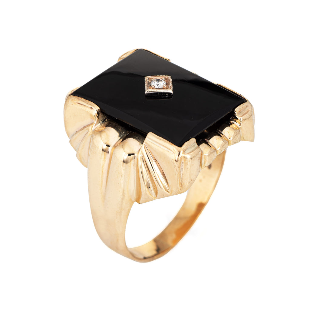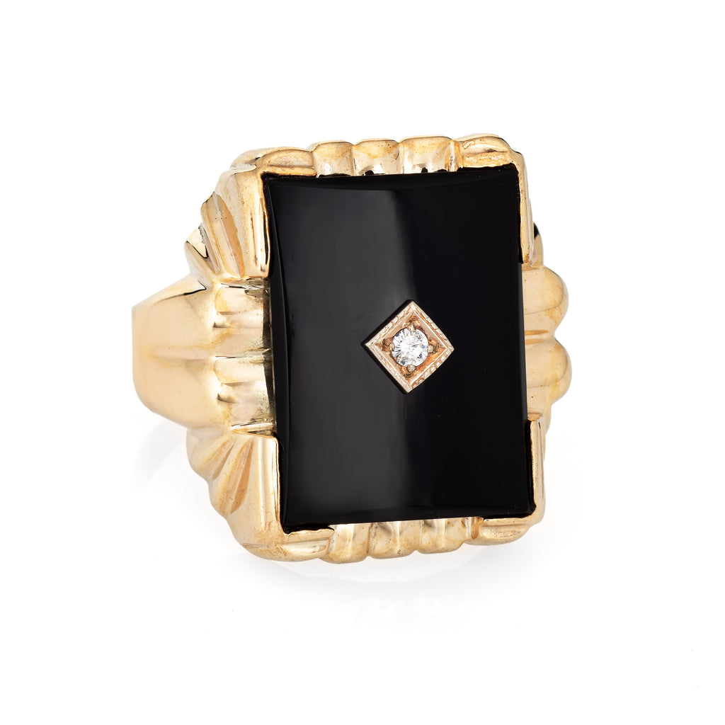 Stylish vintage onyx & diamond ring (circa 1960s to 1970s) crafted in 10 karat yellow gold.
