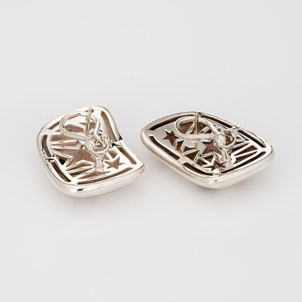 Stylish Michael Bondanza star earrings crafted in sterling silver & 18 karat yellow gold (circa 2000s).