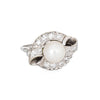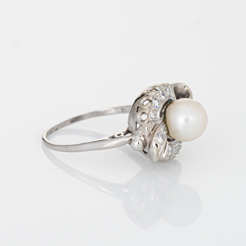 Stylish vintage cultured pearl & diamond ring crafted in 14 karat white gold (circa 1950s to 1960s).