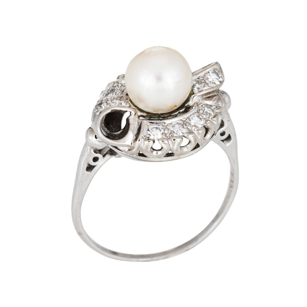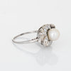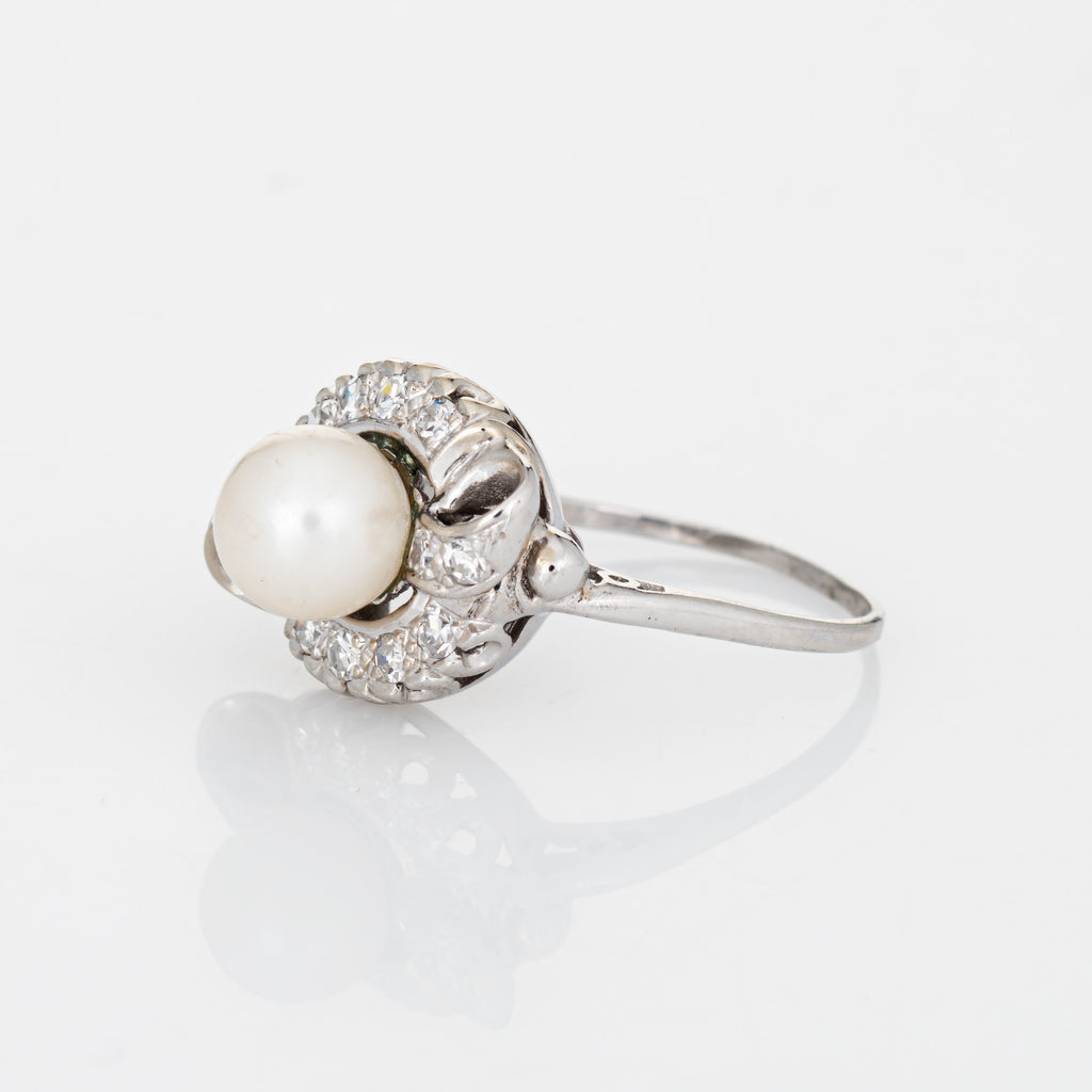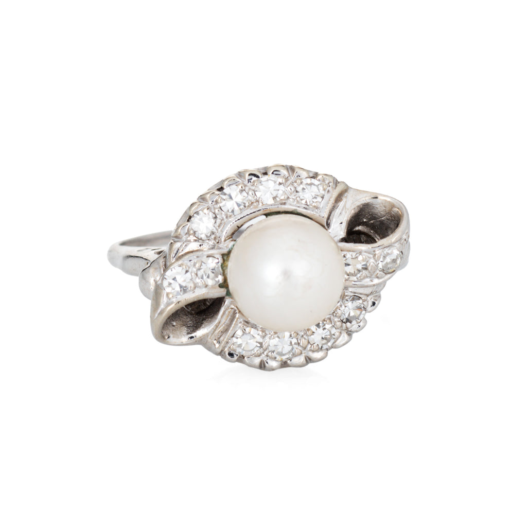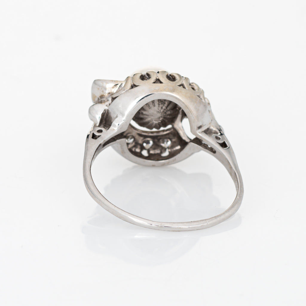 Mid Century Cultured Pearl Diamond Ring 14k White Gold Sz 7.5 Fine Jewelry