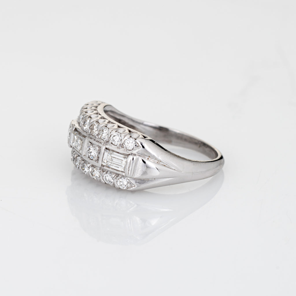Mid Century Diamond Band Vintage Sz 6 Platinum Ring 3 Row Mixed Cuts Jewelry