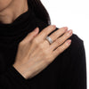 Size & Measurements: The ring is a size 6 (sizable). The band measures 8.5mm wide (0.33 inches) rising 4.5mm from the finger.