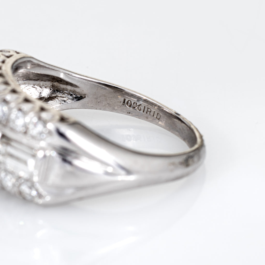 Metal & Hallmark: Platinum. The ring is hallmarked "10% IRID"