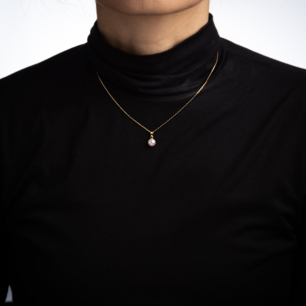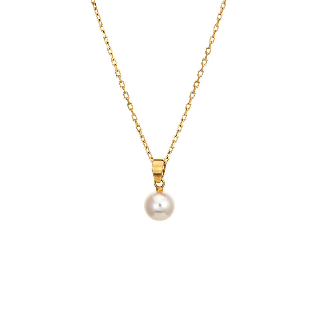 Elegant Mikimoto pendant, finished with a 18k yellow gold chain.
