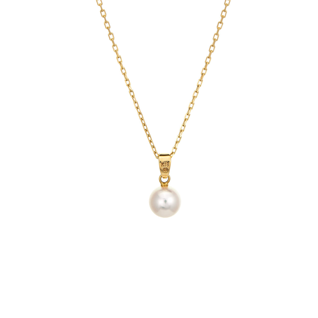 Metal & Hallmark: 18k yellow gold. The chain is hallmarked "K18" and the Mikimoto trademark "M" in a clamshell.