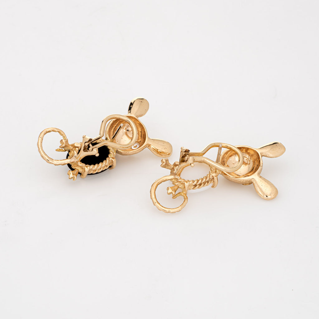 Mouse Earrings Diamond Eyes Vintage 14k Yellow Gold Onyx White Agate Jewelry