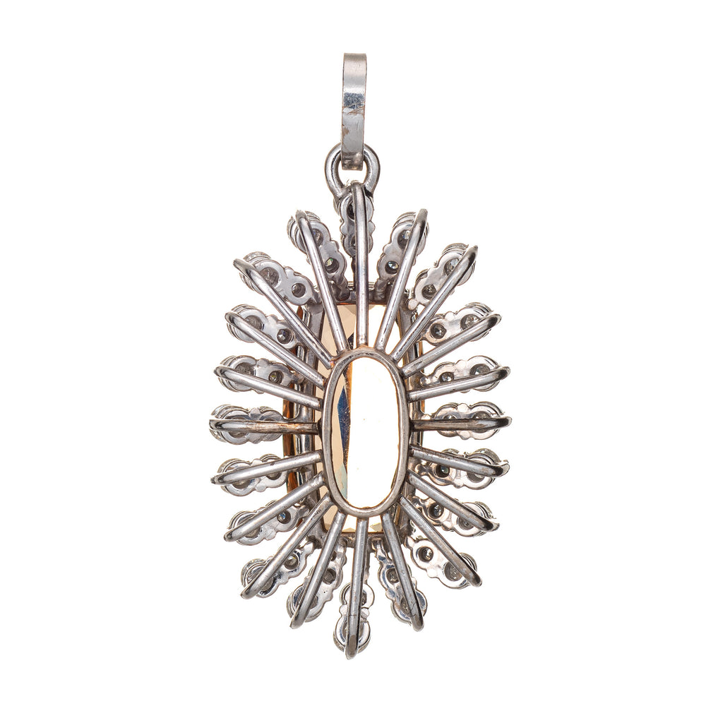 Metal & Hallmark: 14k white gold. The pendant is not hallmarked though it has tested positive for 14k gold.